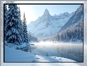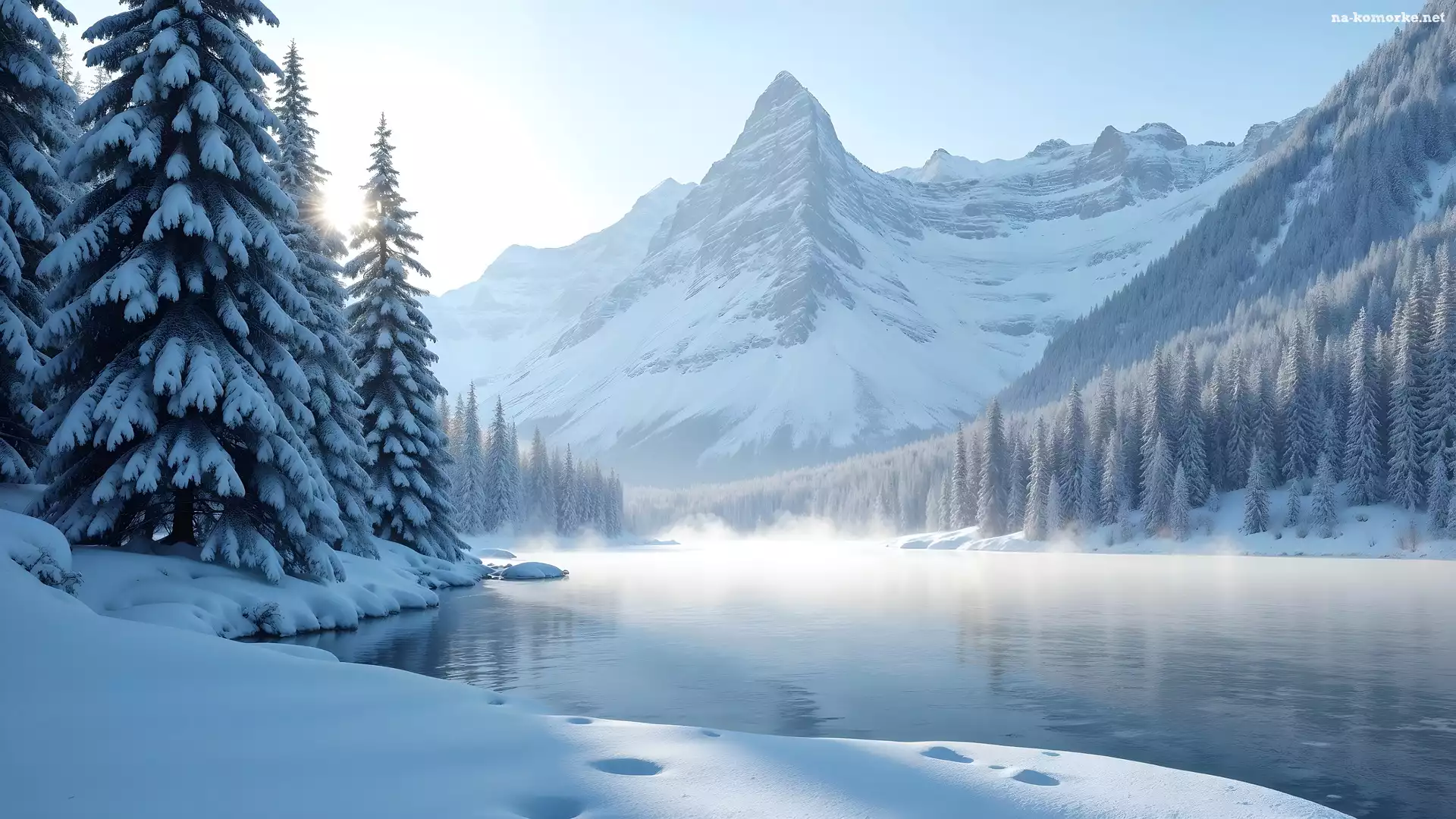 Zima, Rzeka, Mgła, Góry, Drzewa na Komórkę