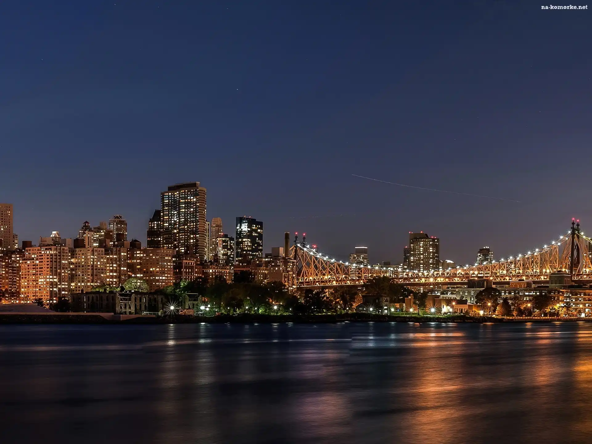 Rzeka, Nowy Jork, Miasto, Nocą na Komórkę