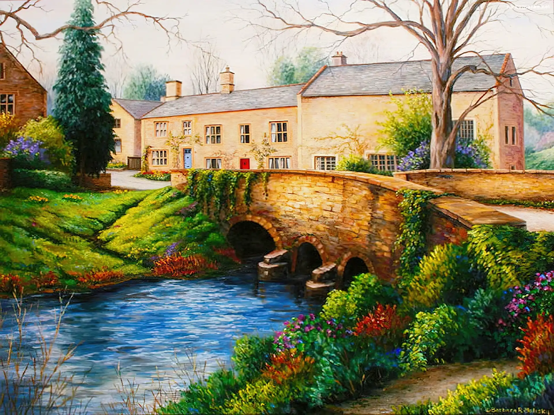 Dziewczynka, Woda, Donal Zolan Koń, Marcia Baldwin, Reprodukcja, Obrazu Zima, Śnieg, Szopa Domek, Dach, Śnieg, Spadzisty Dziecko, Motylek Kolorowy, Parasol, Ponury, Most Most, San Francisco, Golden, Gate Czerwony, Tama, Dom, Rzeka Lustrzane, Dom, Jezioro, Łódka, Odbicie Rozłożyste, Wodospady, Drzewo, Domki Francja, Rzeka, Paryż, Most Rzeka, Las Domek, Zachód, Słońca, Zakochani, Jezioro Dom, Traktor, Pies