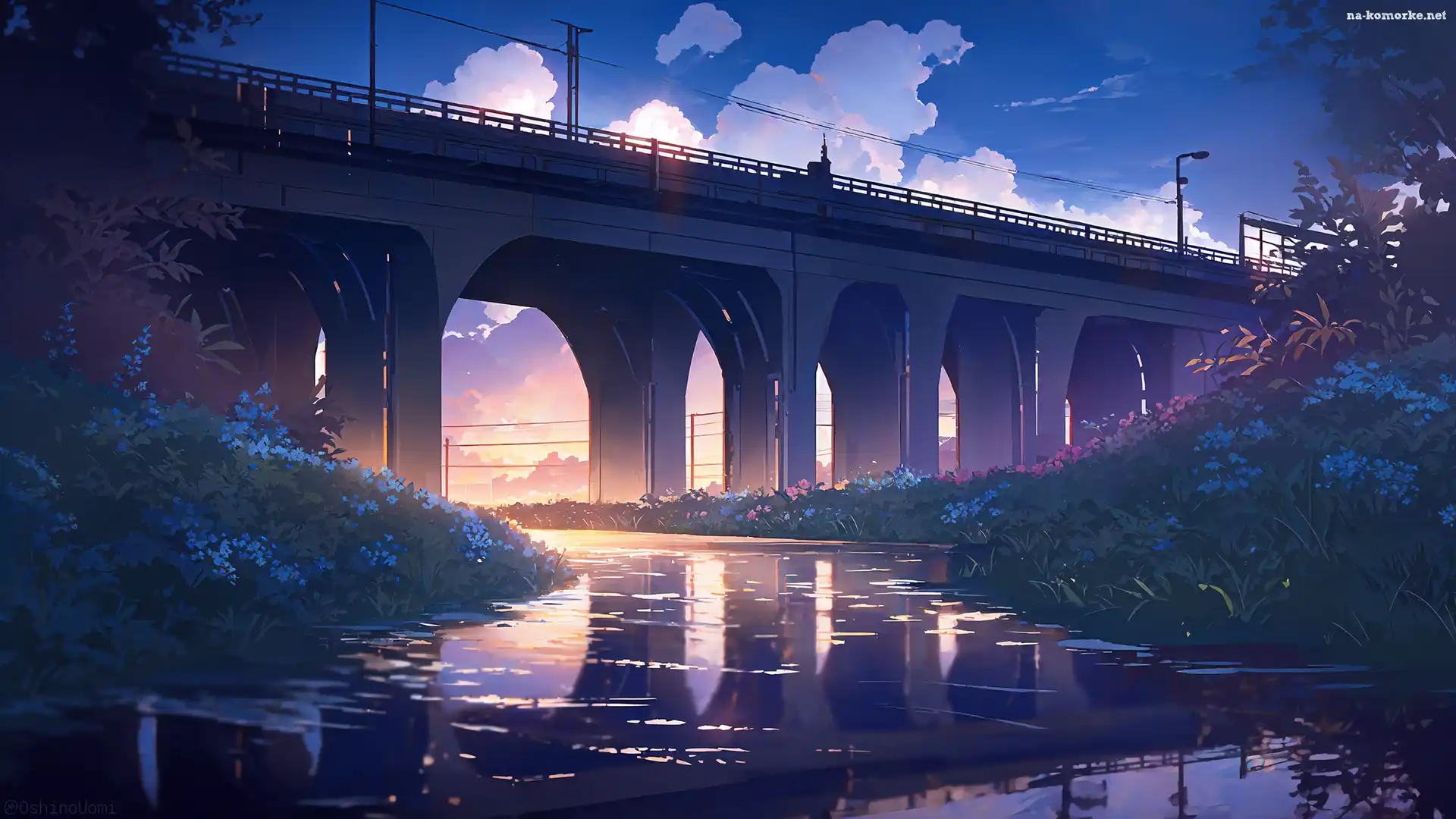 Most, Rośliny, Grafika, Rzeka na Komórkę