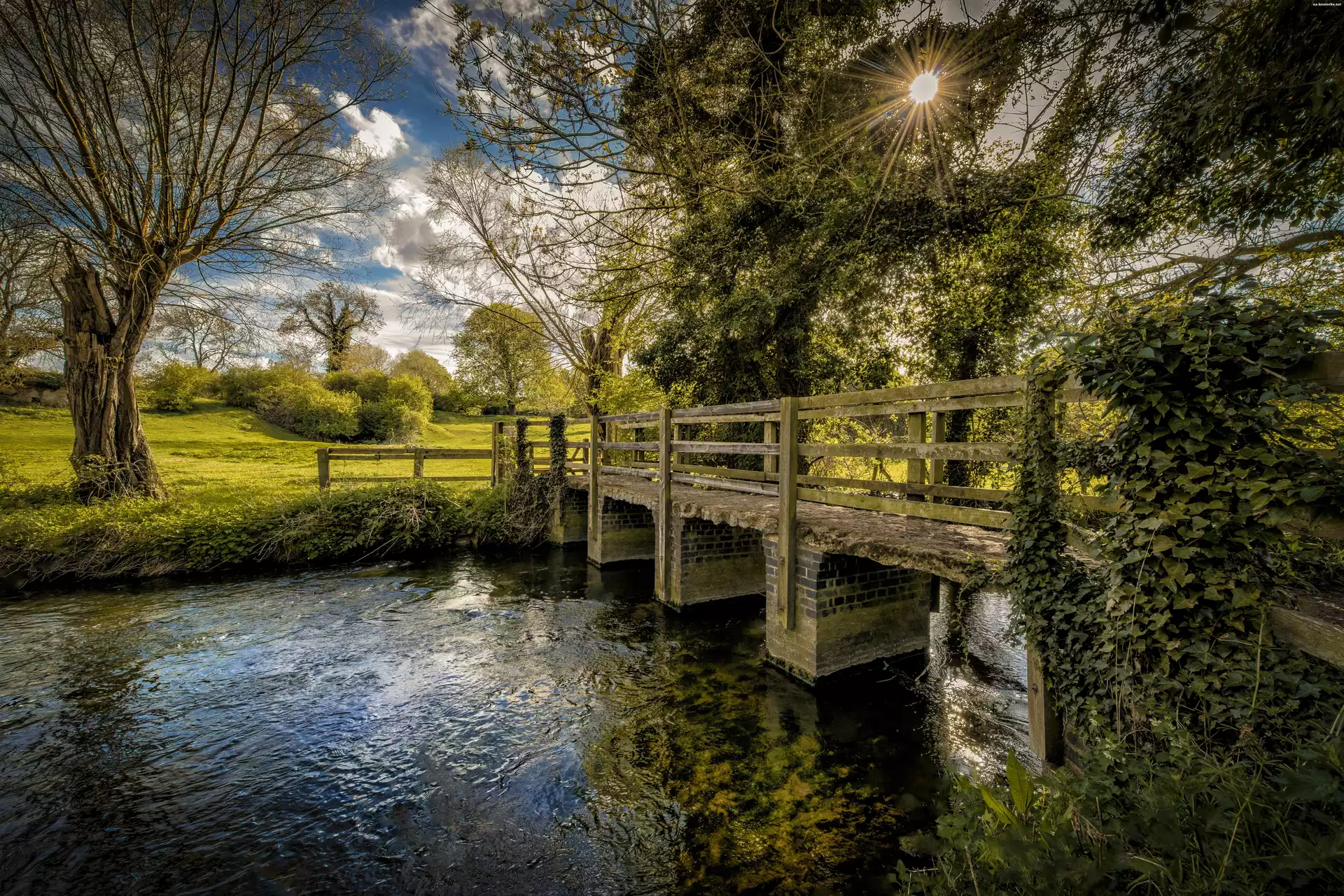 Rzeka, Promienie Słońca, Most, Poranek na Komórkę