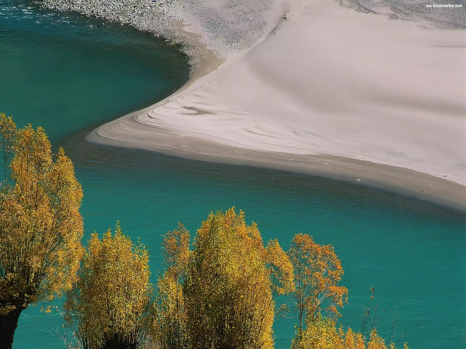 Rzeka, Drzewa, Piaszczysty, Brzeg na Komórkę