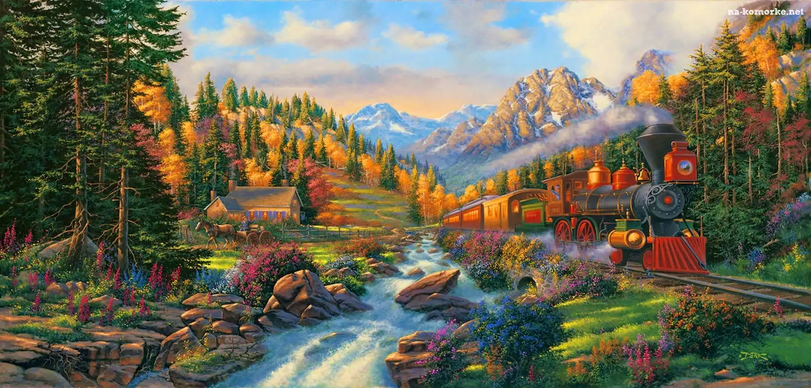Rzeka, Widoczek, Pociąg, Góry na Komórkę