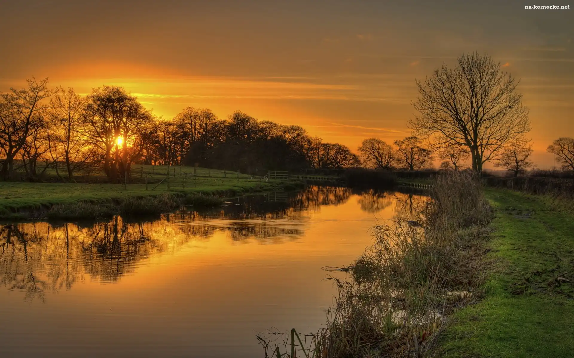 Rzeka, Słońca, Pola, Zachód na Komórkę