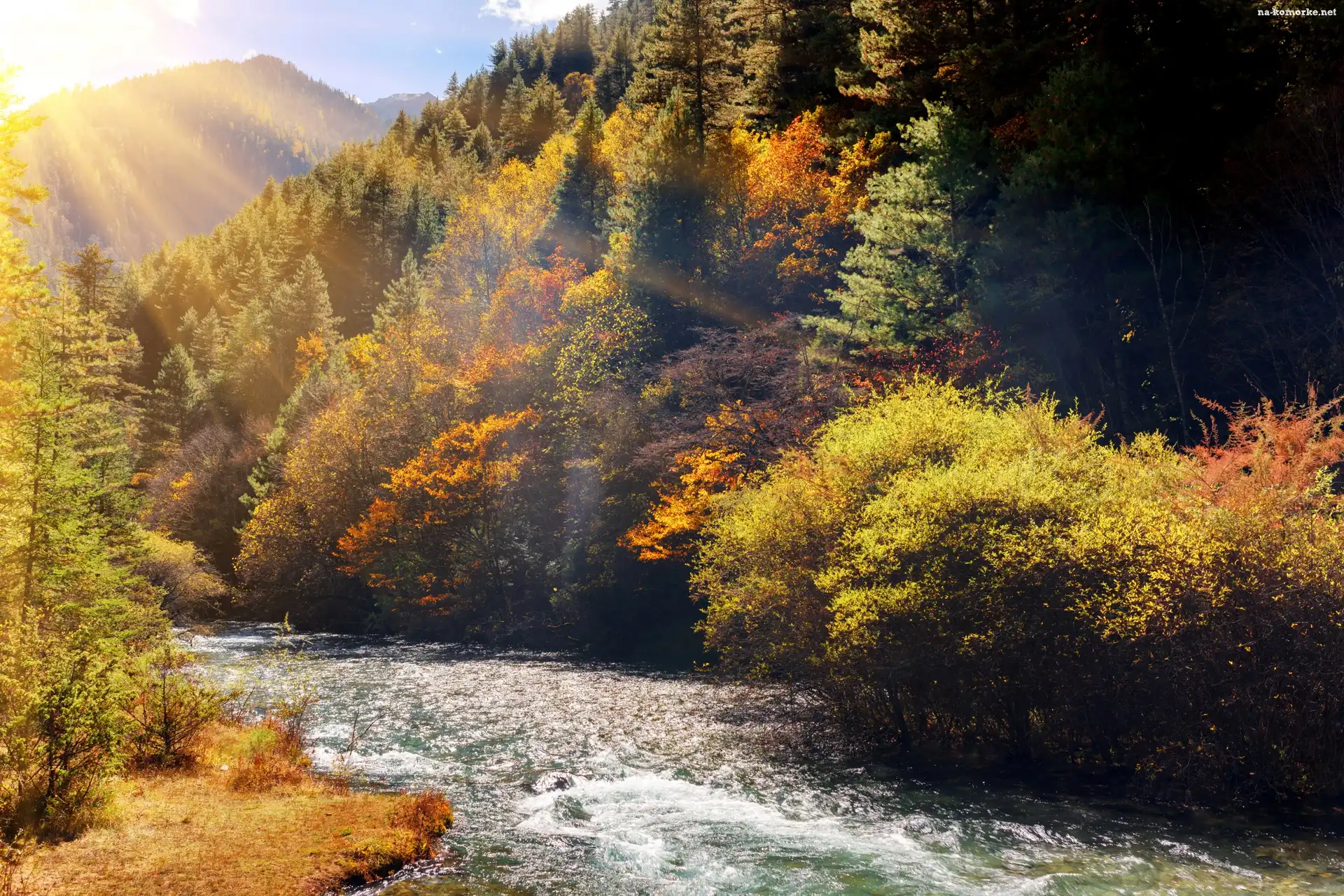 Rzeka, Jesień, Promienie słońca na Komórkę