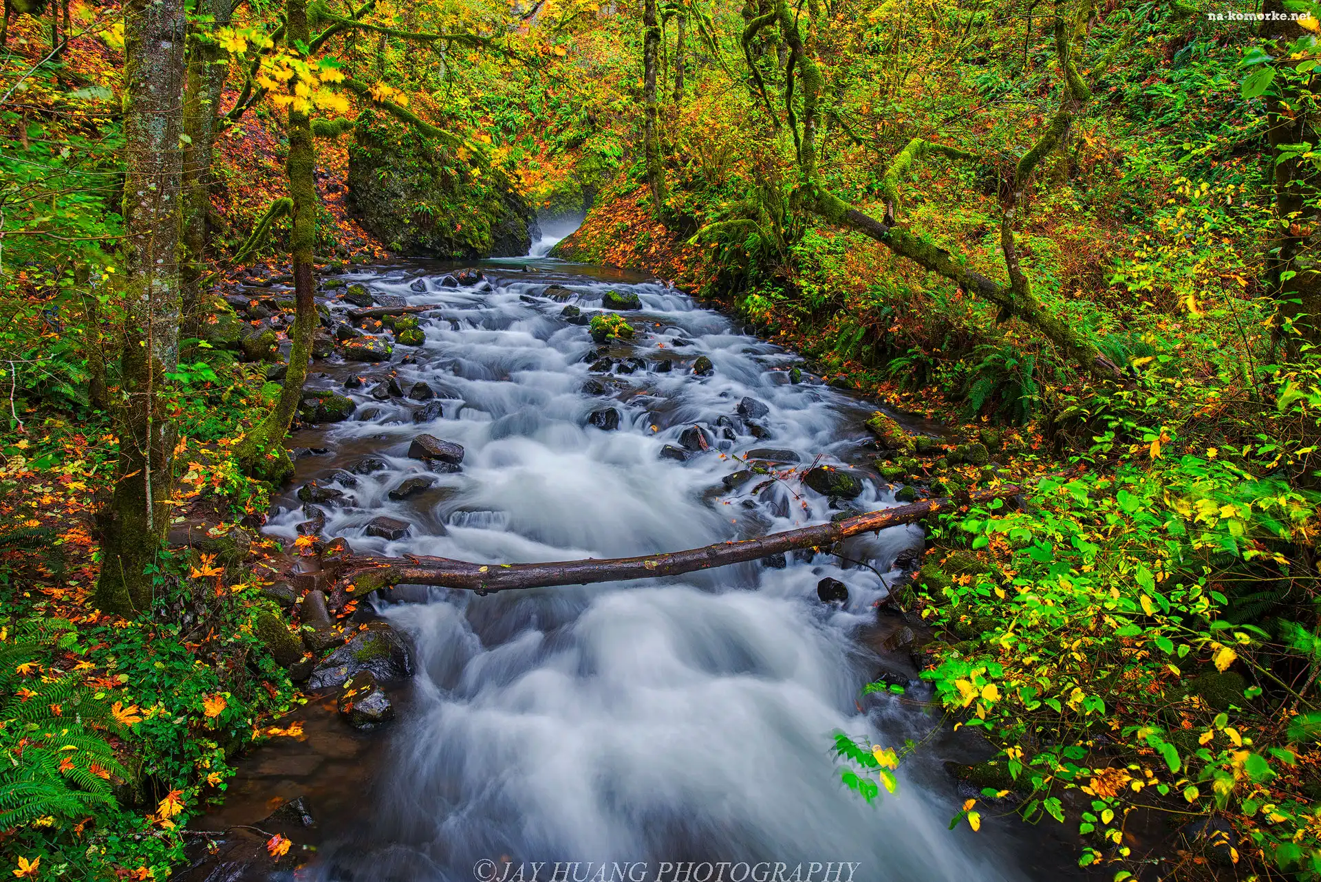 Rzeka Bridal Veil Creek, Oregon, Drzewa, Stany Zjednoczone, Las, Kamienie, Jesień, Rezerwat przyrody Columbia River Gorge na Komórkę |