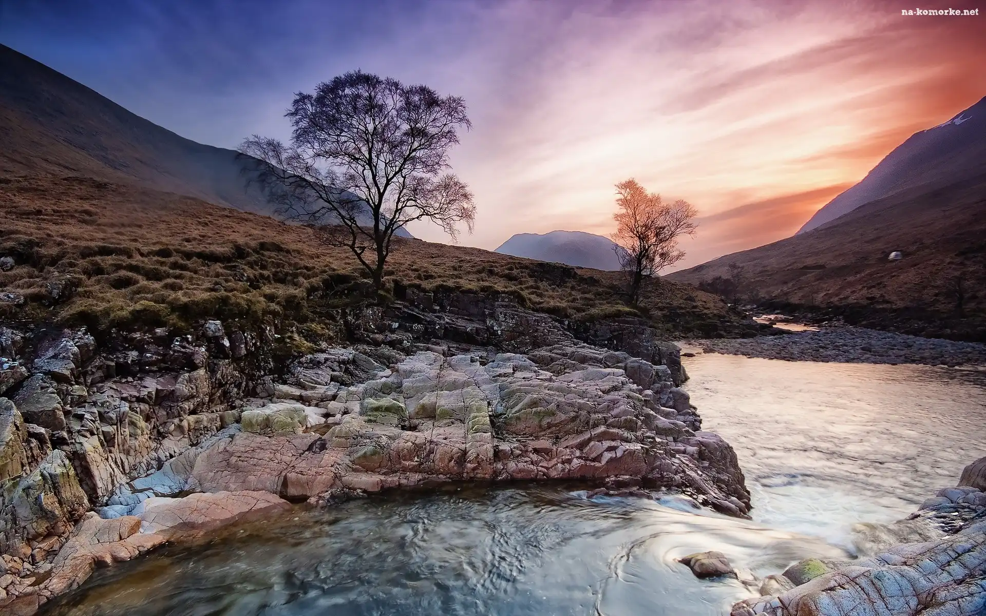 Rzeka, Słońca, Skałki, Zachód na Komórkę