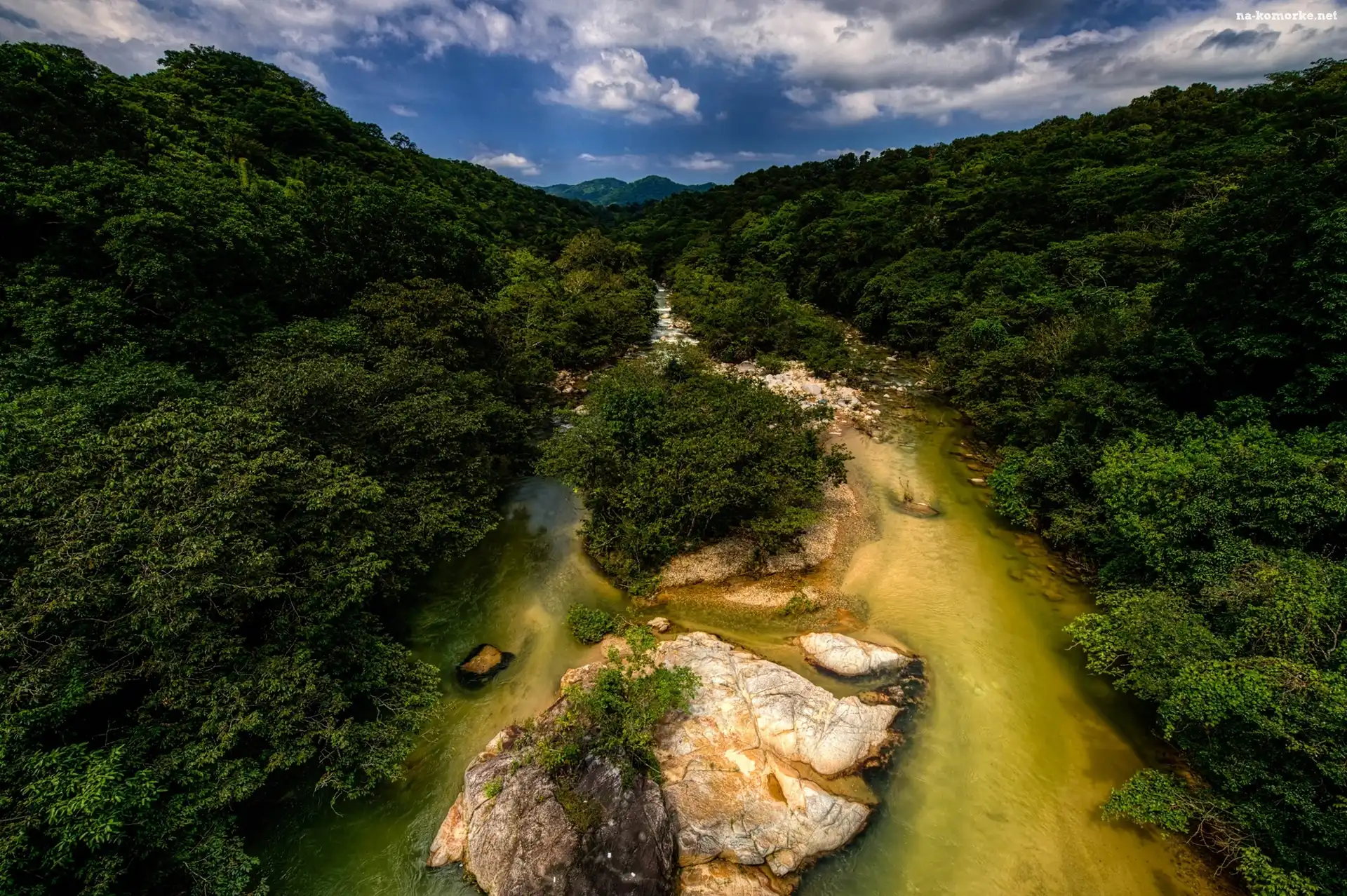 Rzeka, Góry, Skały, Roślinność na Komórkę