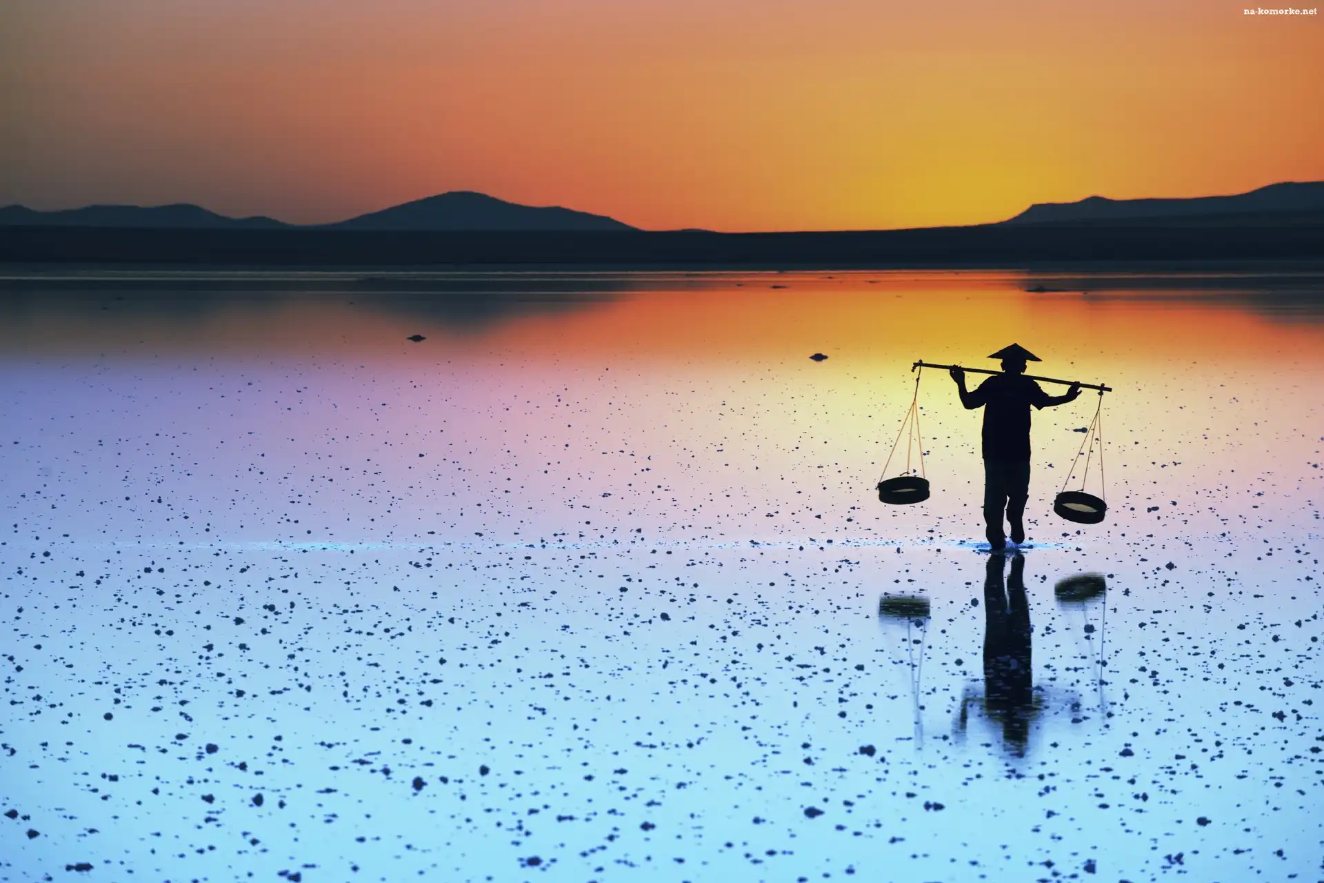 Rzeka, Zachód Słońca, Mężczyzna na Komórkę