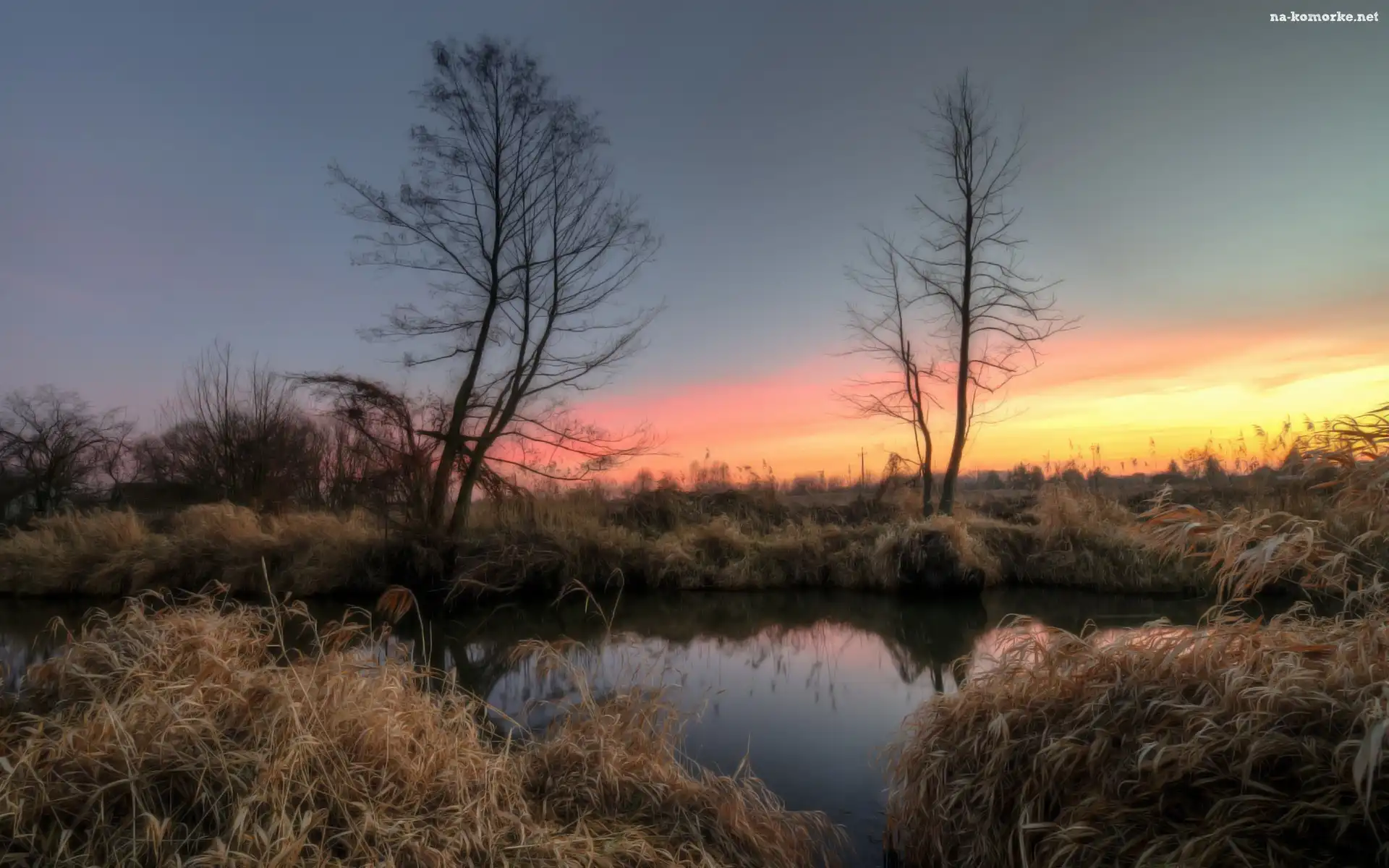 Rzeka, Słońca, Szuwary, Wschód na Komórkę