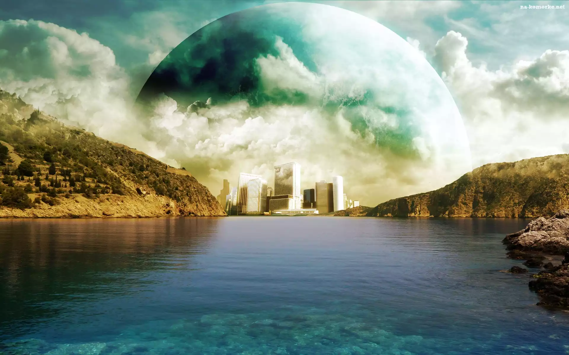 Rzeka, Planeta, Wzgórza, Niebo na Komórkę