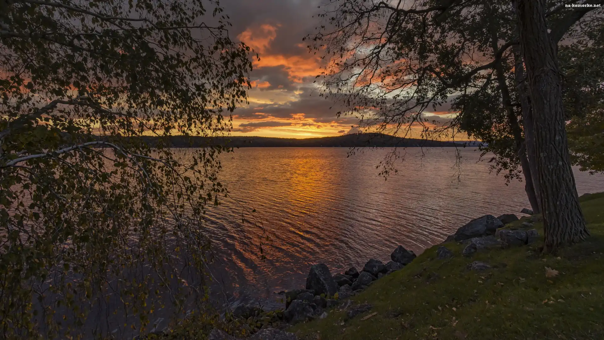 Rzeka, Drzewo, Zachód słońca na Komórkę