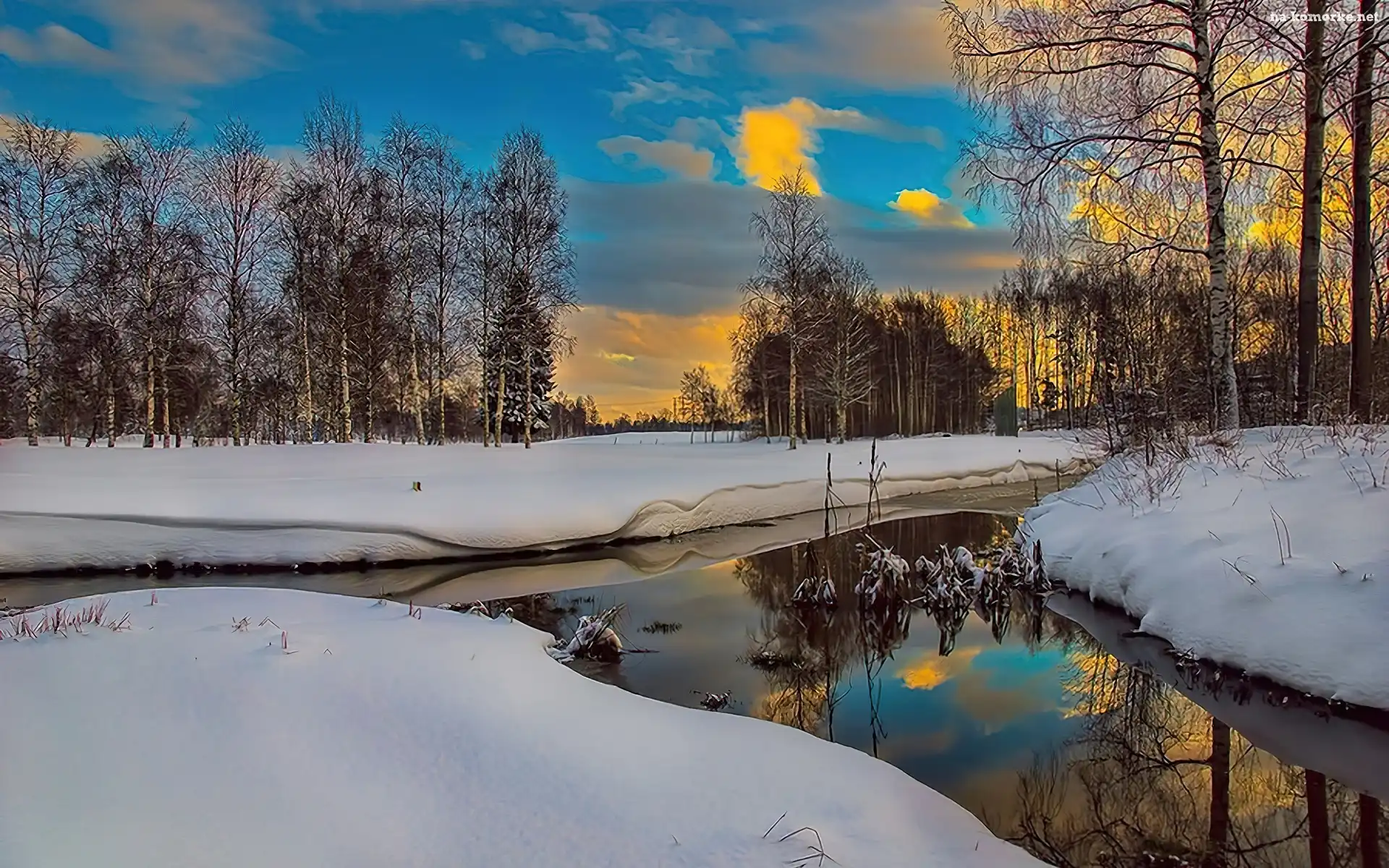 Zima, Rzeka, Drzewa na Komórkę