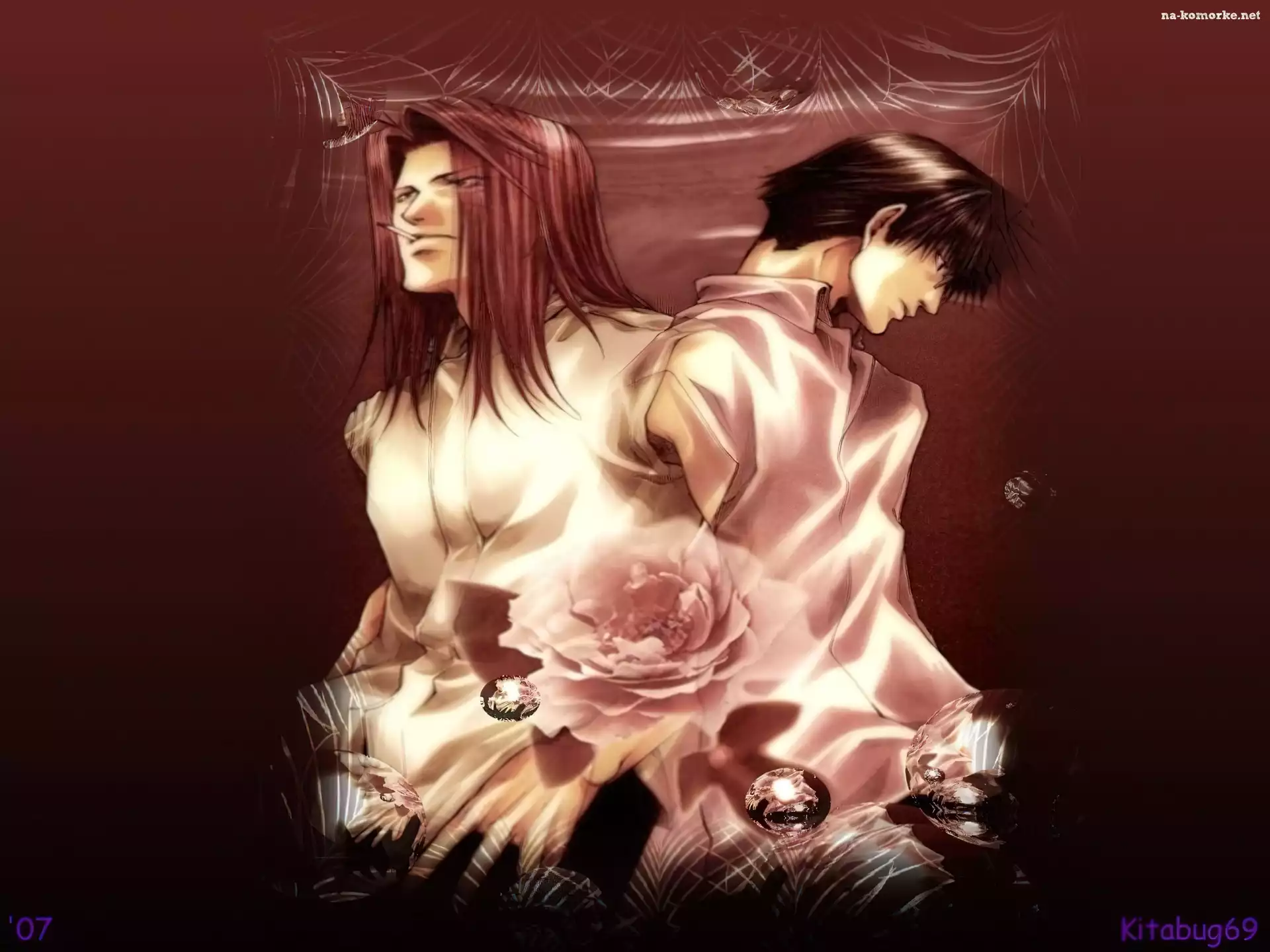 Saiyuki, ludzie, kropla, róża na Komórkę