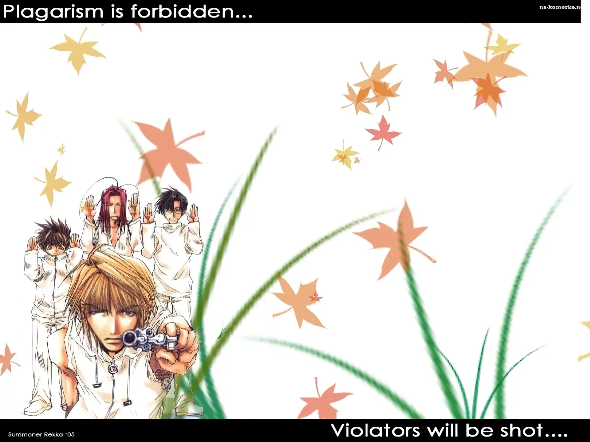 Saiyuki, liście, ludzie, pistolet na Komórkę