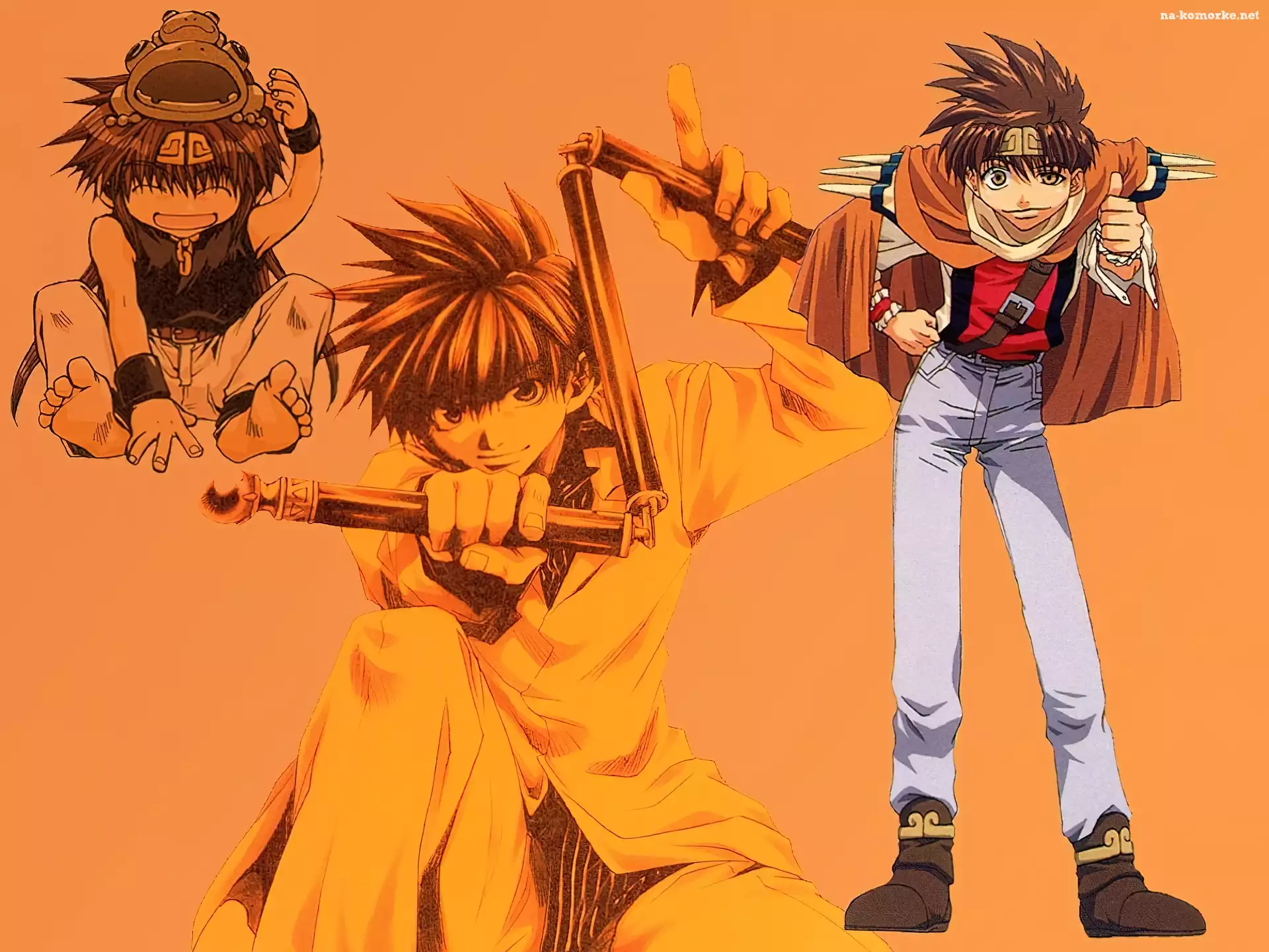 Saiyuki, peleryna, ludzie, nunczako na Komórkę