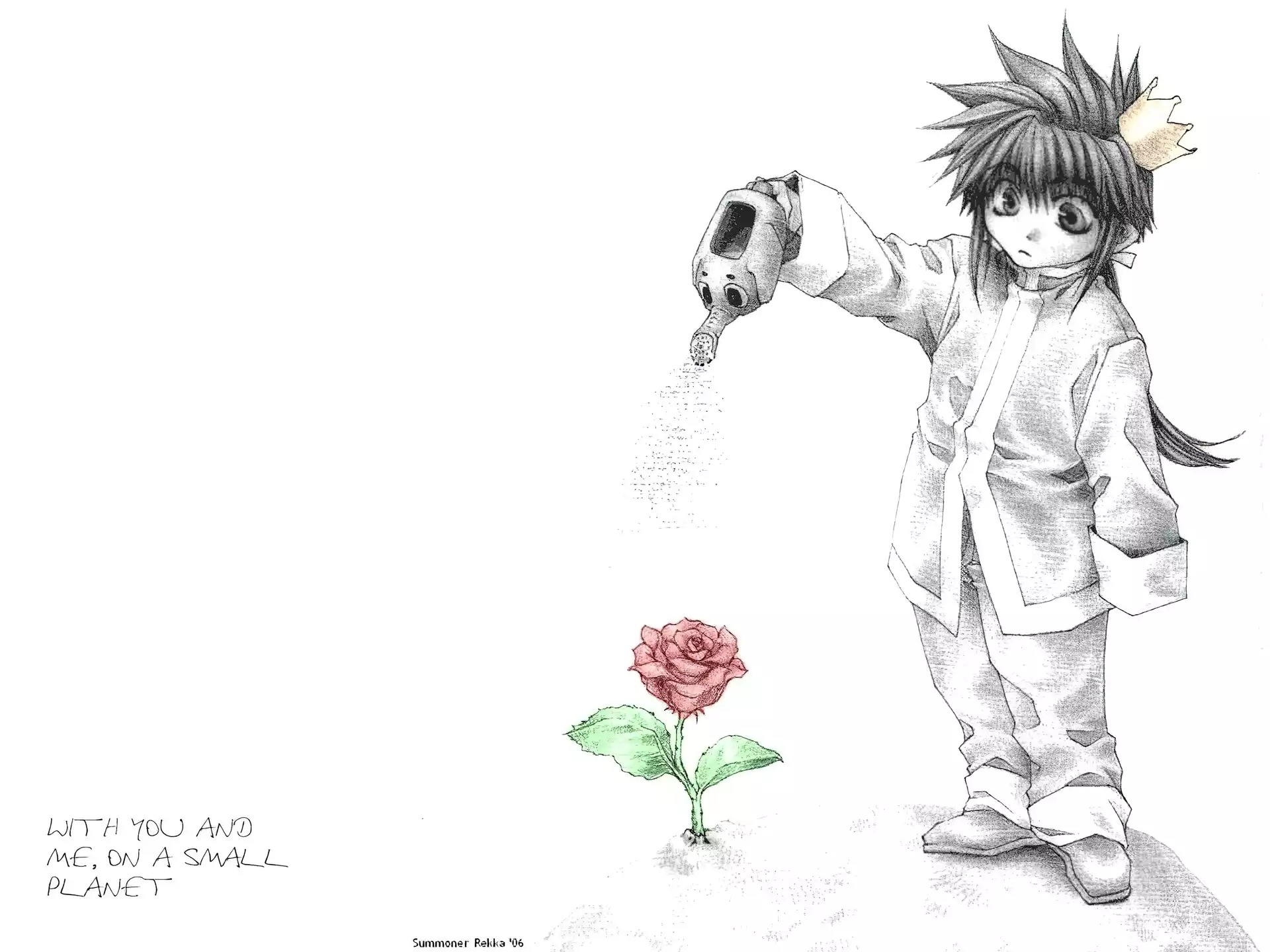 Saiyuki, kwiat, osoba, konewka na Komórkę