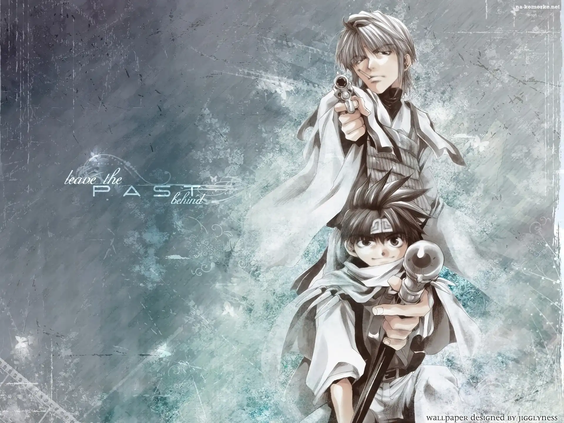 Saiyuki, ludzie, pistolet, laska na Komórkę