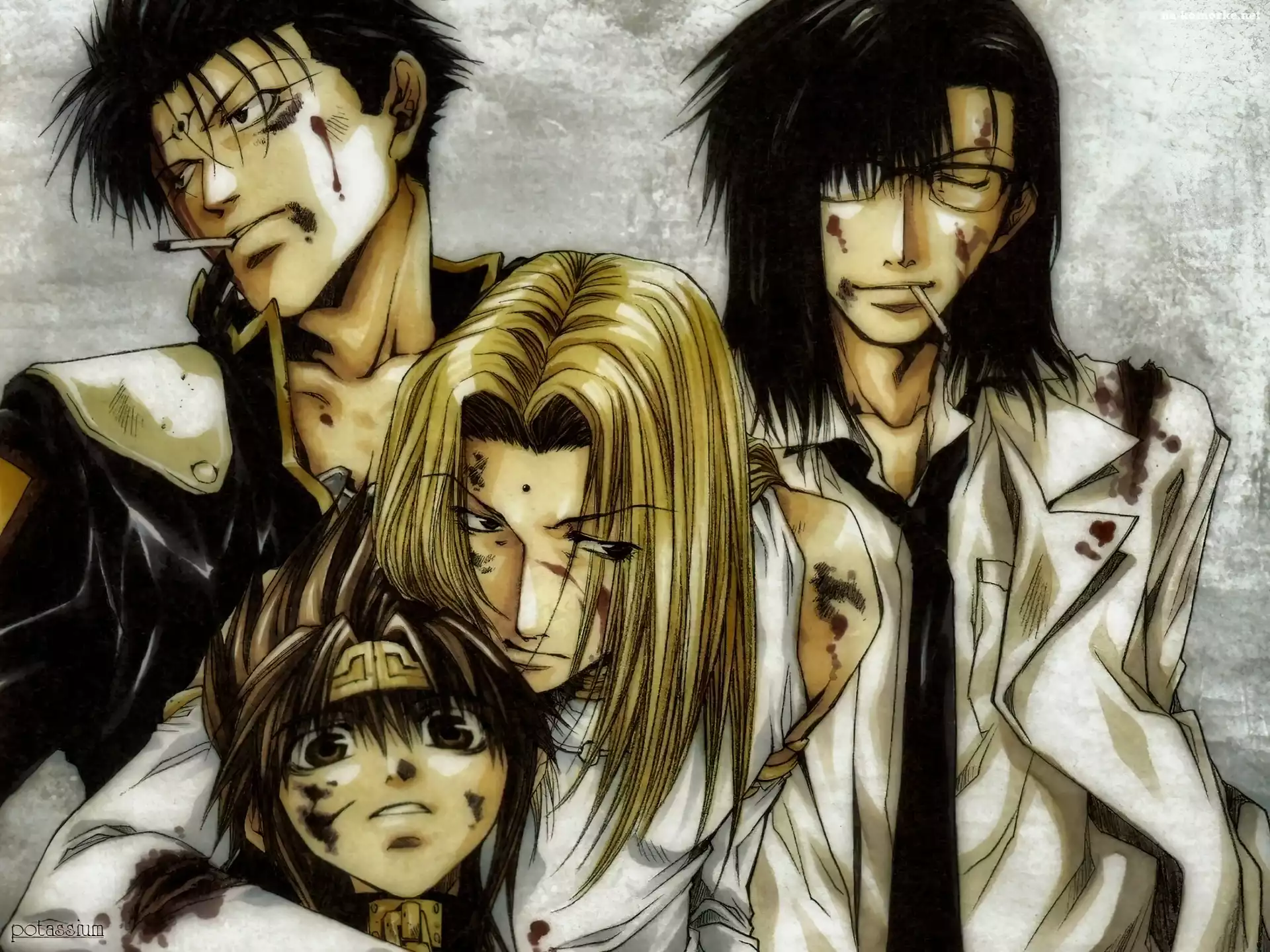 Saiyuki, postać, pazury Saiyuki, kwiat, osoba, konewka Saiyuki, lody, ice cream Saiyuki, zamieszanie, foch Saiyuki, Love or Dead Saiyuki, postać, garnitur Saiyuki, postać, papieros Saiyuki, ludzie, okulary, płaszcz Saiyuki, hakaii, black and white Saiyuki, słoneczny refleks Saiyuki, trzy lokory Saiyuki, opaska Saiyuki, pistolet, twarz ludzie, Saiyuki, zdjęcia, plakat, postacie