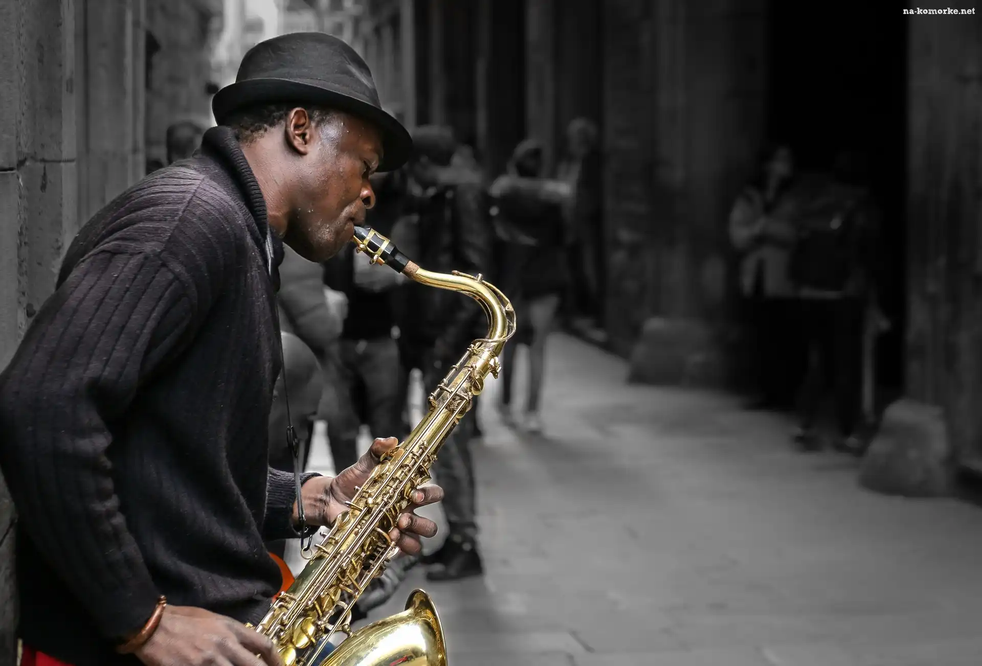 Mężczyzna, Saksofon, Ulica na Komórkę