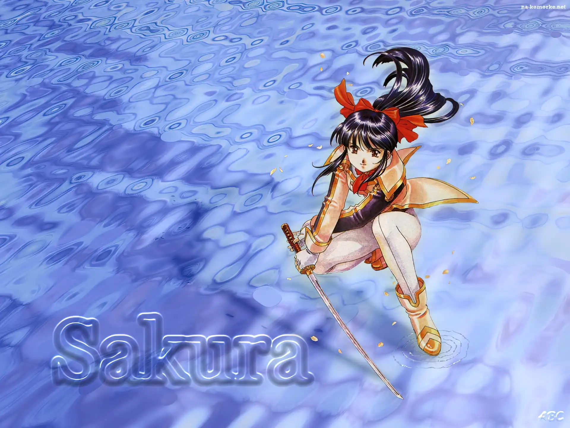 Sakura Wars, czarne włosy, czerwona kokarda na Komórkę