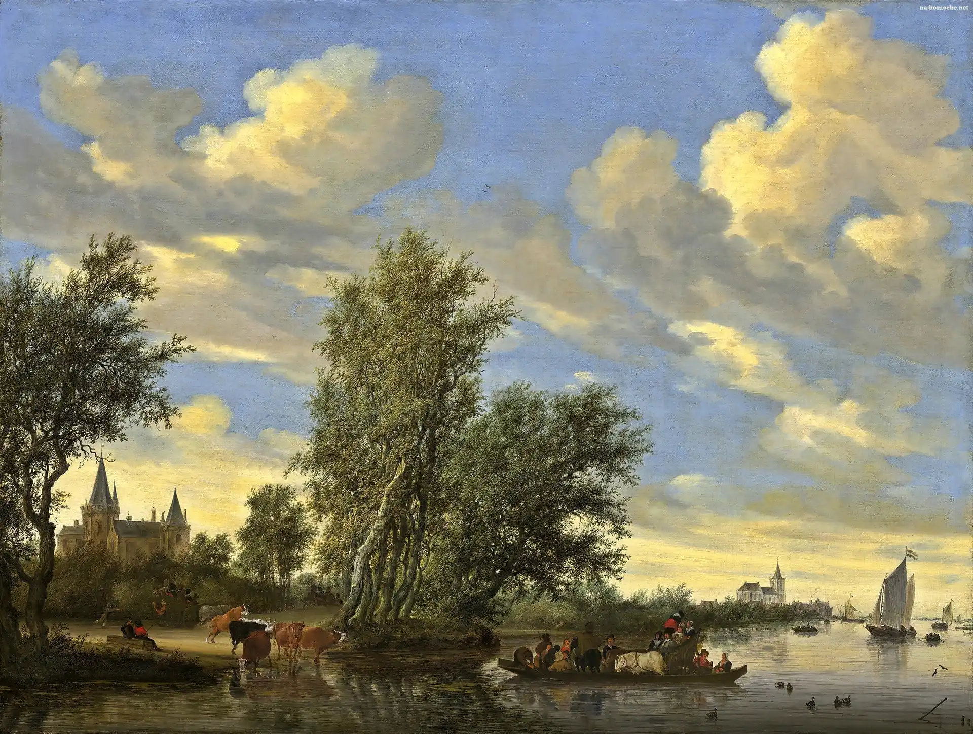 Obraz, Salomon, van Ruysdael, Prom, Na Rzece na Komórkę