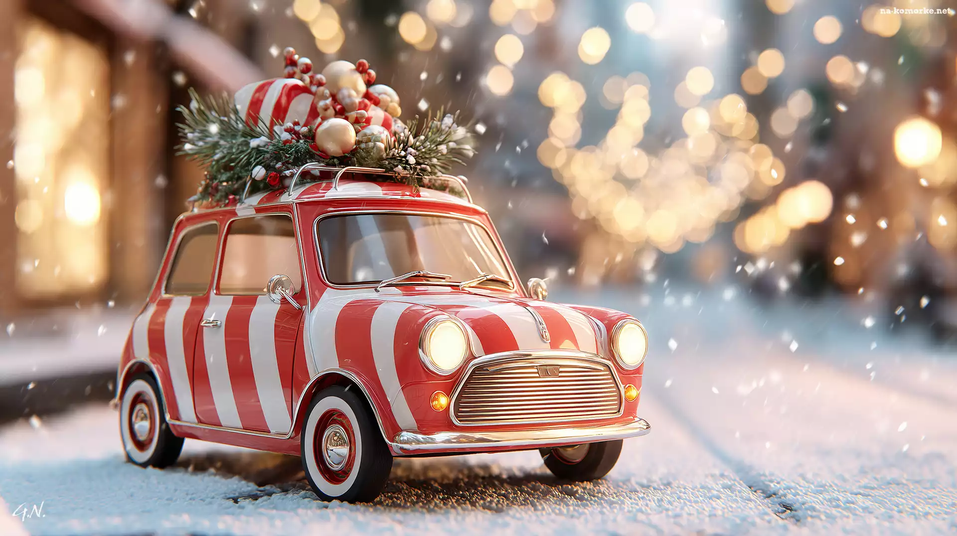 Świąteczne, Ozdoby, Zima, Samochód, Grafika AI na Komórkę