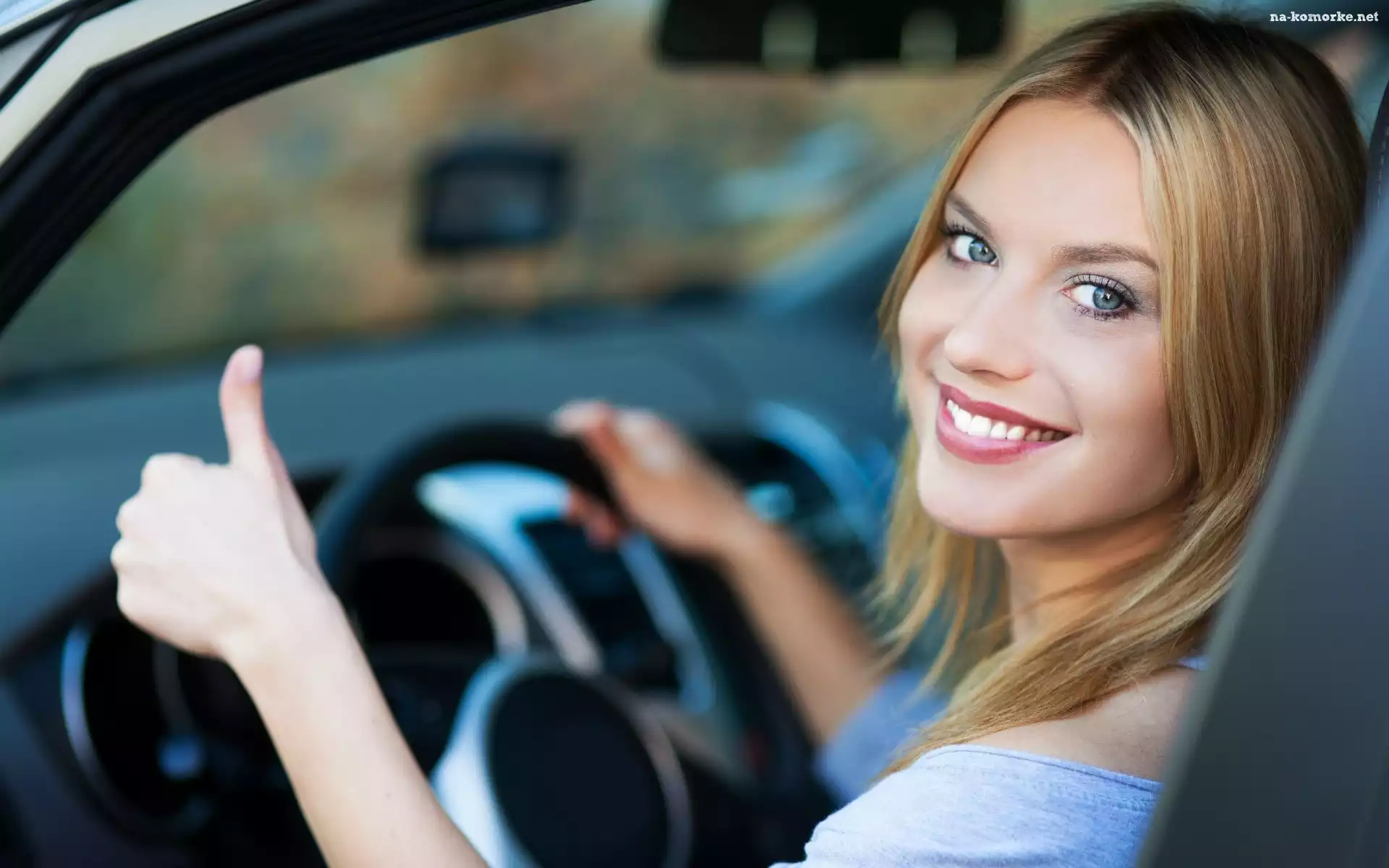 Blondynka, Samochód, Uśmiech na Komórkę