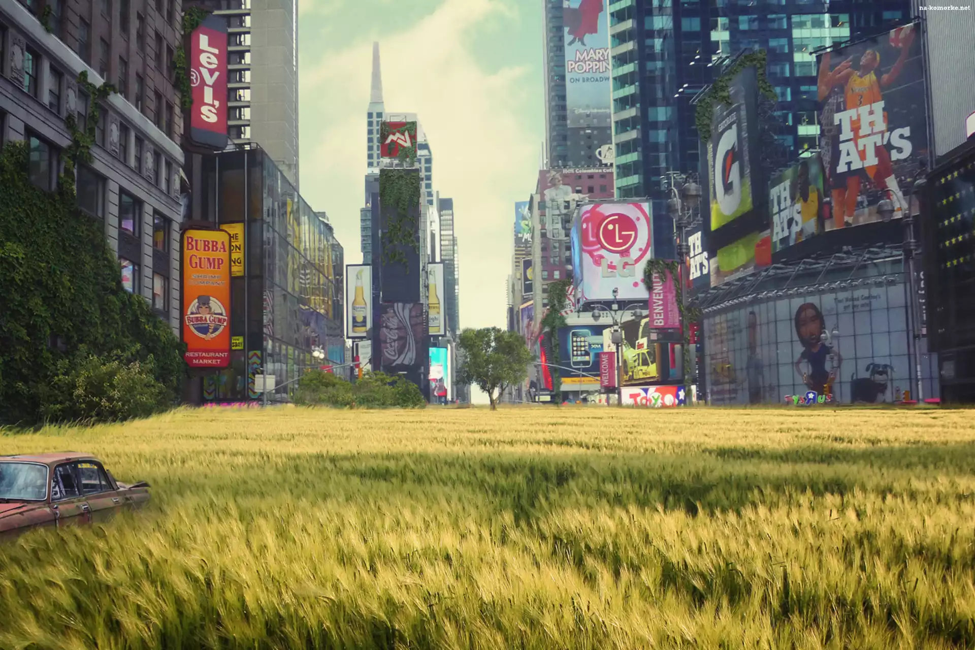 Samochód, Miasto, Budynki, Reklamy, Zboże na Komórkę