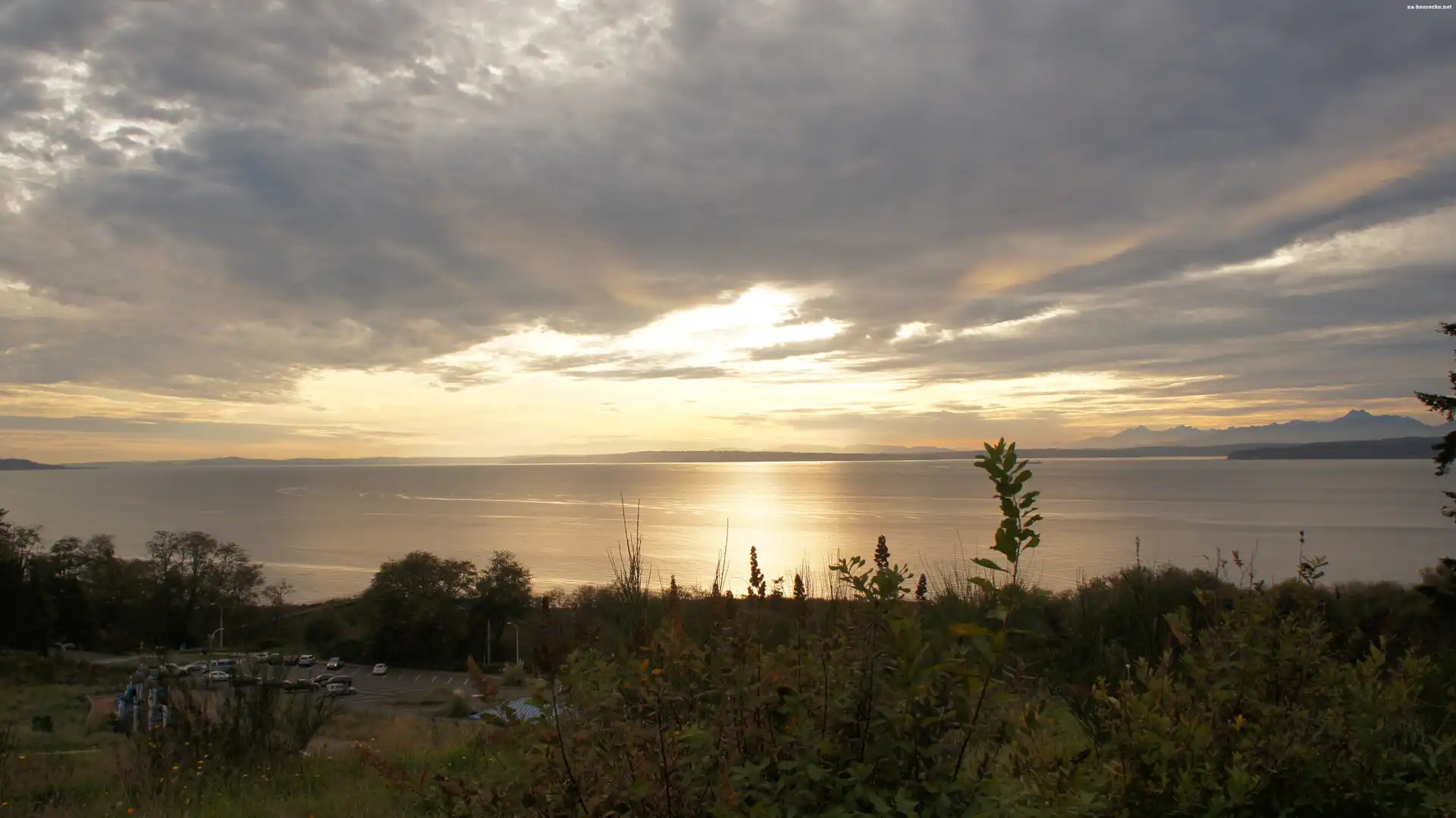 Samochody, Zachód, Słońca, Jezioro, Drzewa na Komórkę