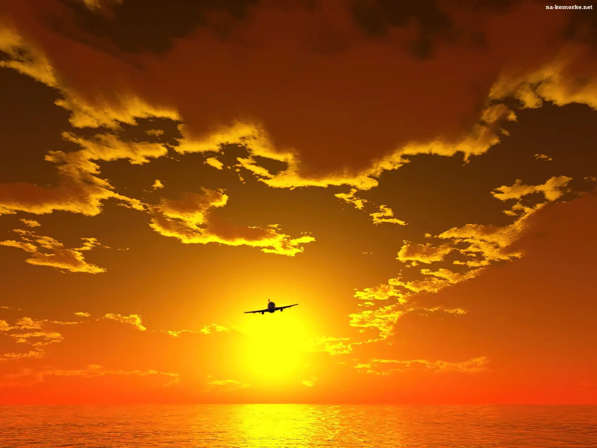 Samolot, Morze, Zachód, Słońca na Komórkę