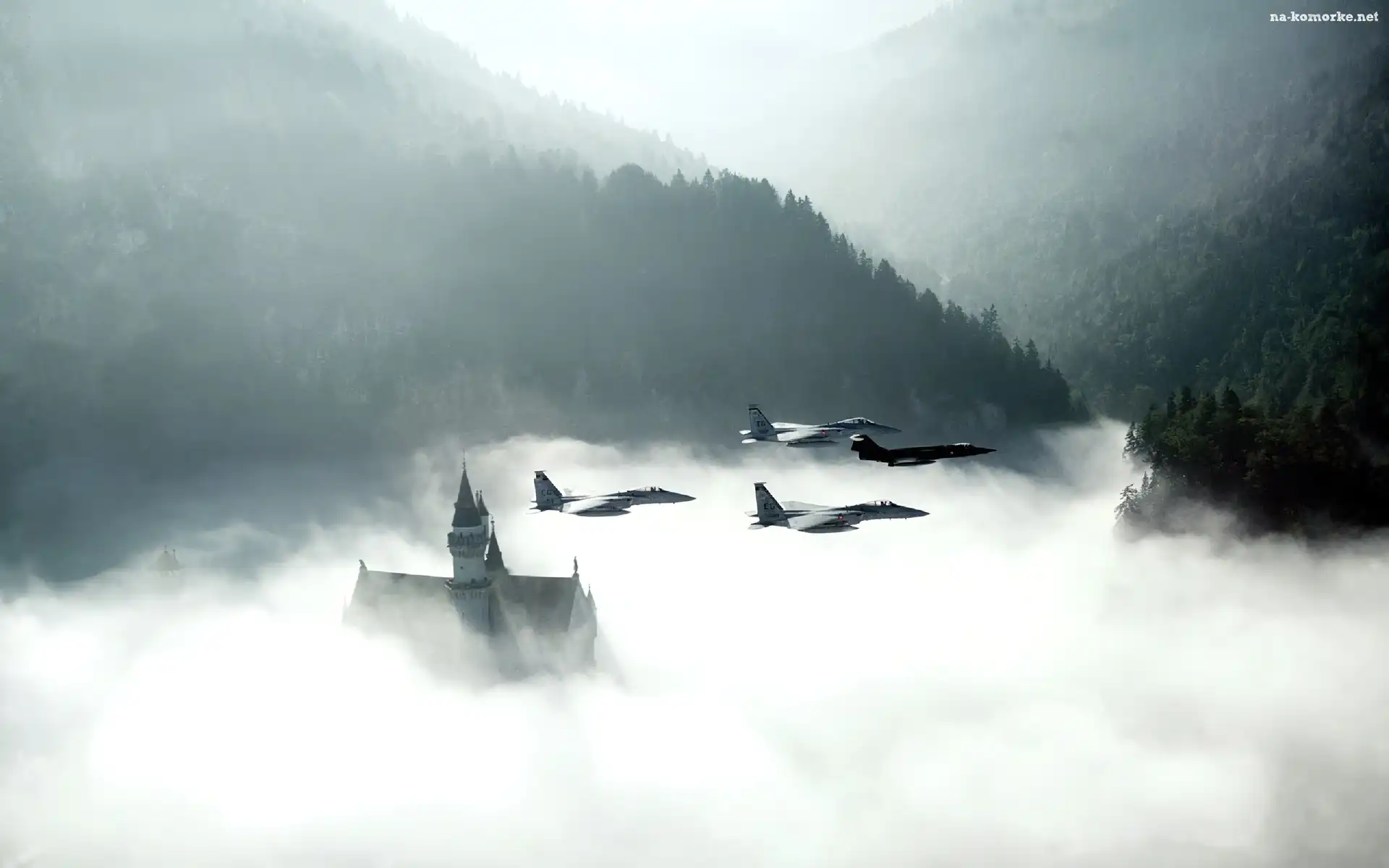 Samoloty, Wzgórza, Mgła, Zamek na Komórkę
