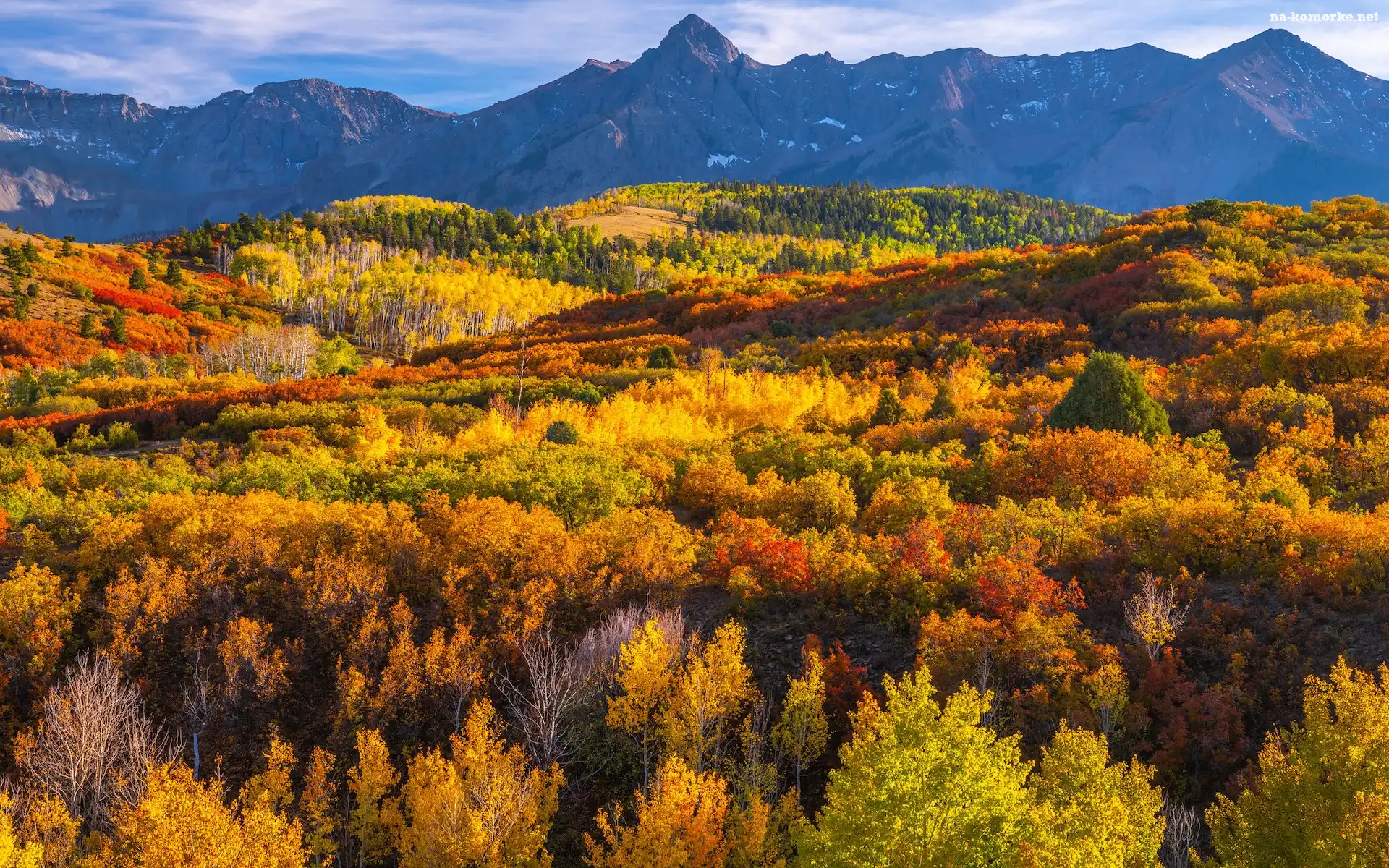 San Juan Mountains, Jesień, Lasy, Przełęcz, Stany Zjednoczone, Góry, Kolorado, Dallas Divide, Drzewa na Komórkę |