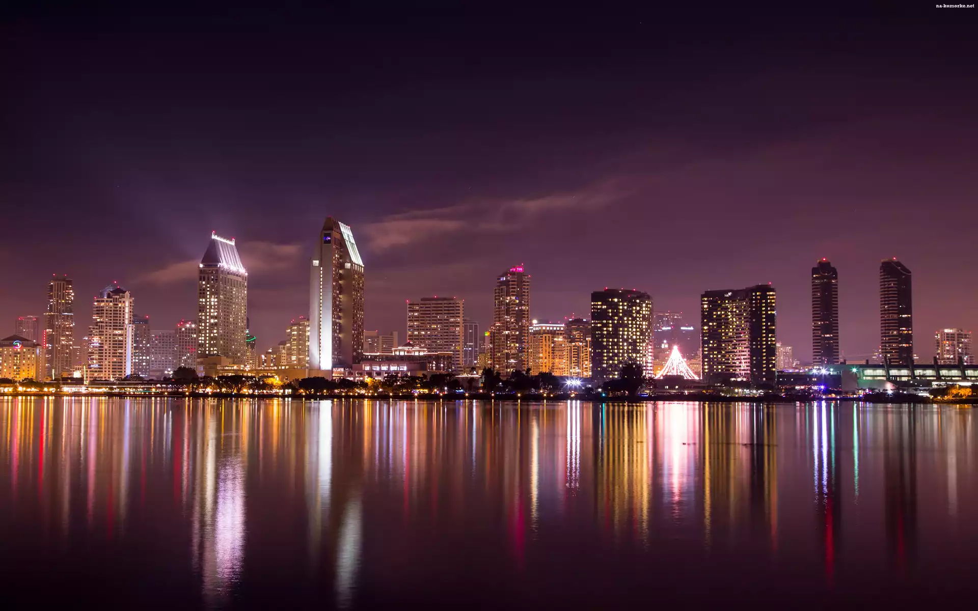 San Diego, Miasto, Noc, Oświetlone na Komórkę