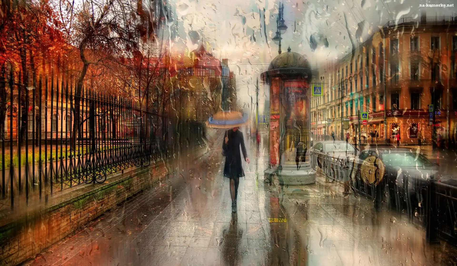Kobieta, Sankt Petersburg, Rosja, Ulica, Deszcz, Parasol na Komórkę