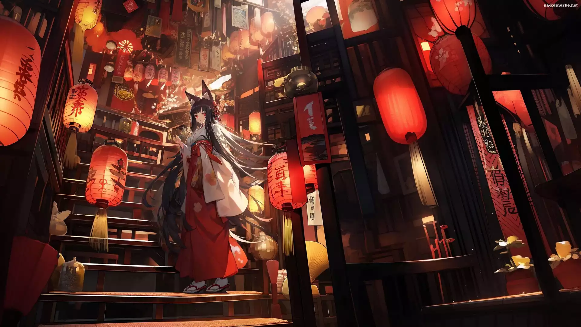 Dziewczyna, Schody, Lampiony, Uszy, Anime na Komórkę