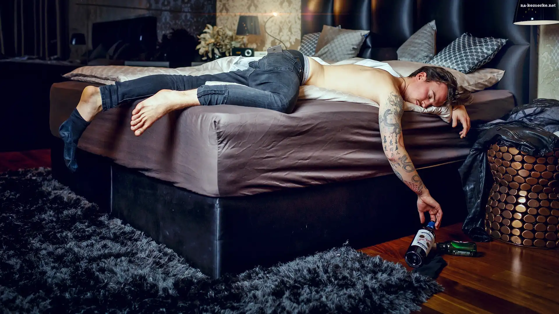 Sen, Śpiący, Mężczyzna, Tatuaż, Łóżko na Komórkę