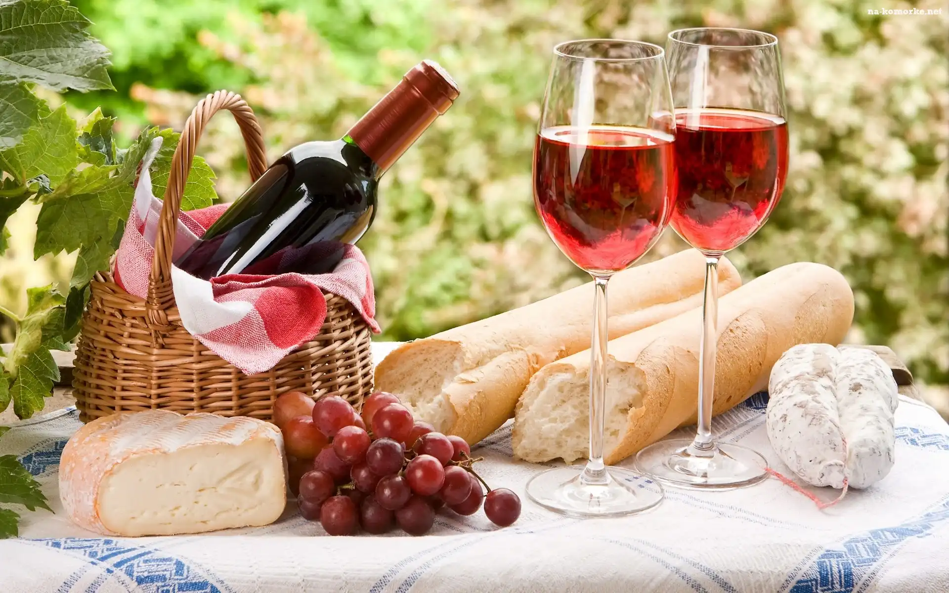 Ser, Wina, Butelka, Winogrona, Bułka, Wędlina na Komórkę