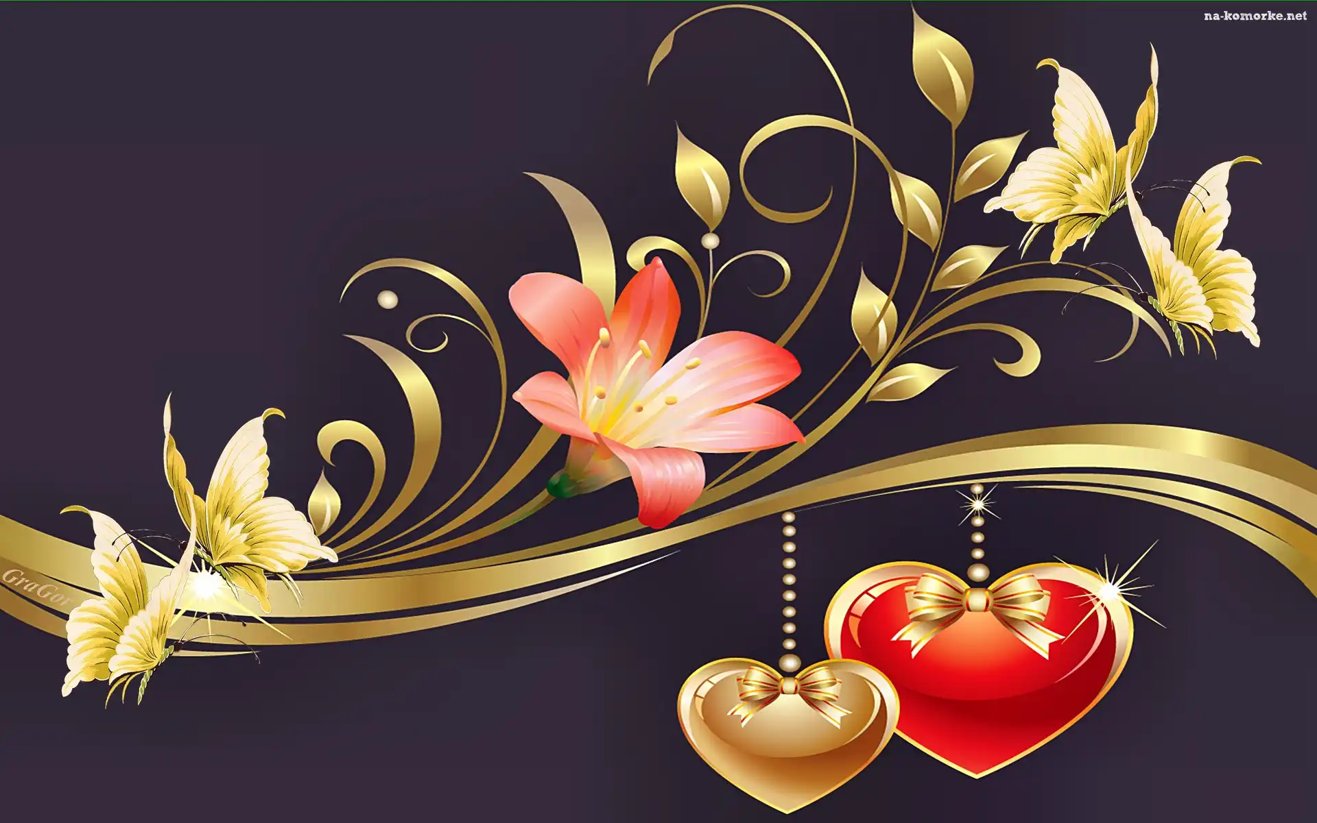 Serca, Walentynki, Kwiatek, Motyle na Komórkę