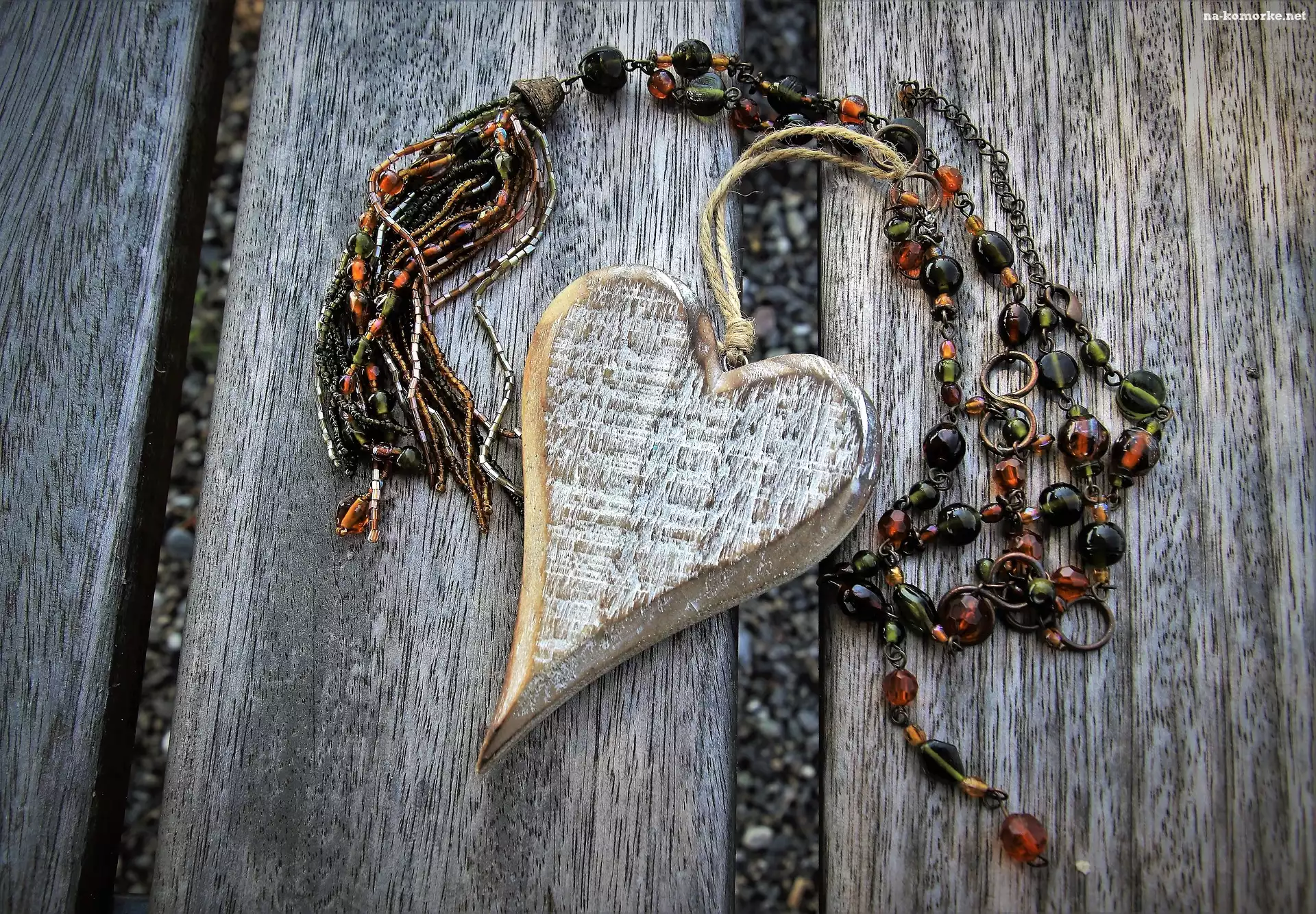 Serce, Walentynki, Drewniane, Korale na Komórkę
