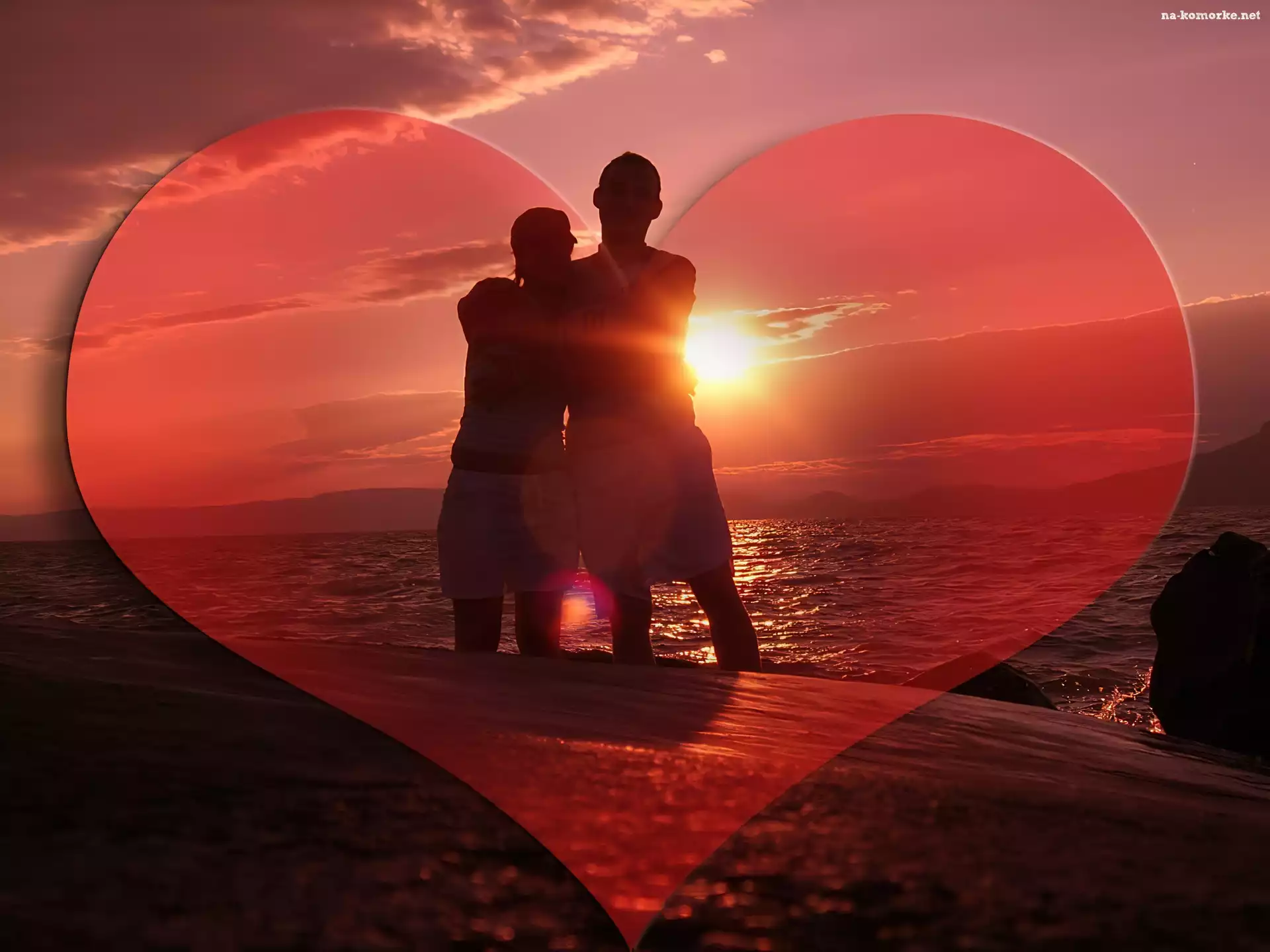 Serce, Zakochana, Para, Morze, Czerwone na Komórkę