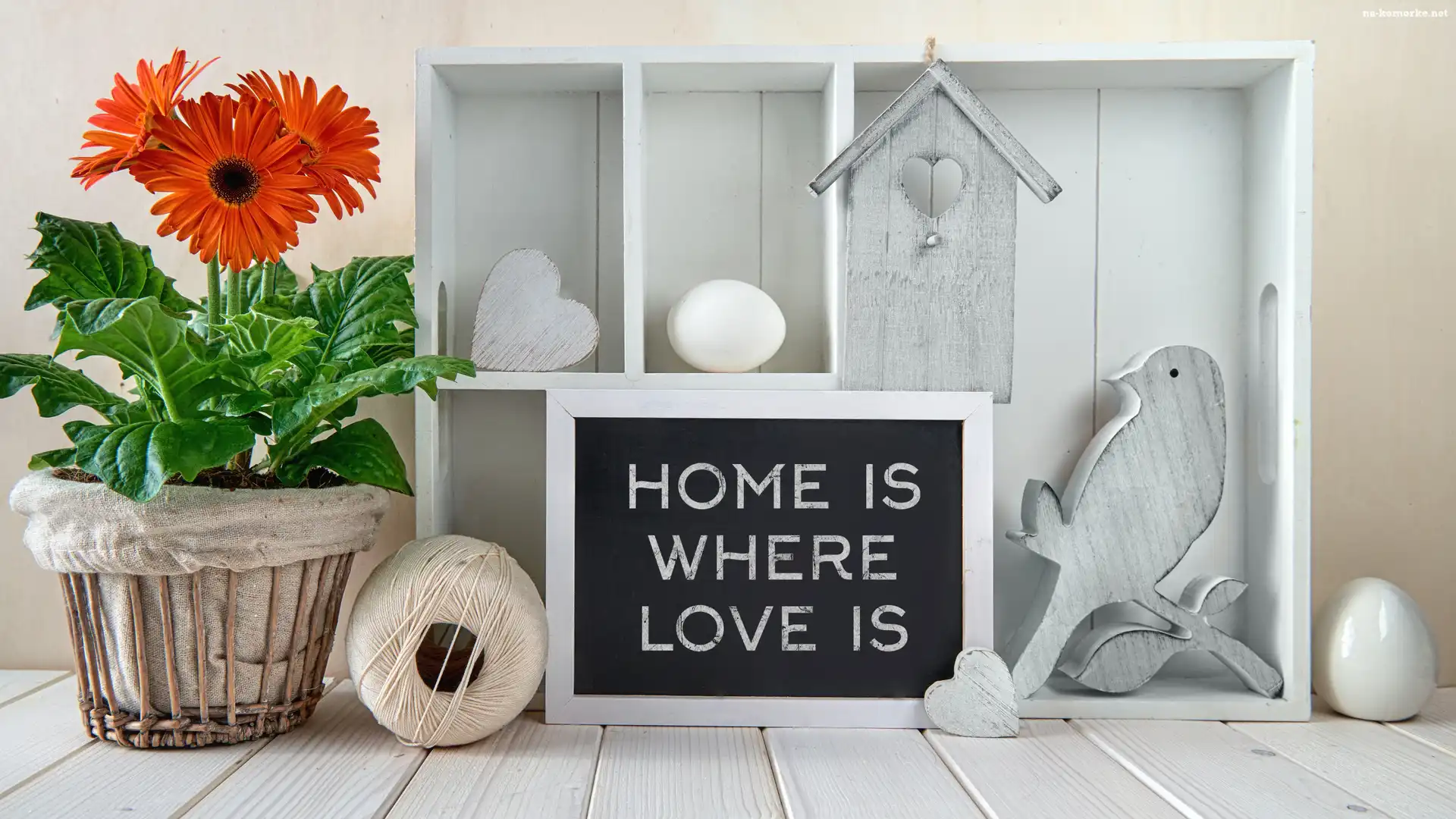 Kwiaty, Serce, Gerbera, Dekoracje, Doniczka, Włóczka, Tabliczka, Napis na Komórkę