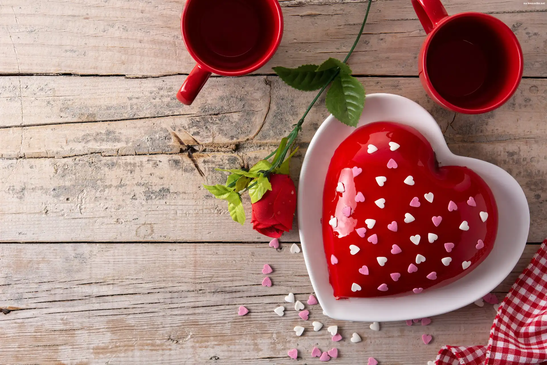 Deser, Walentynki, Kawa, Serce, Filiżanki, Róża na Komórkę