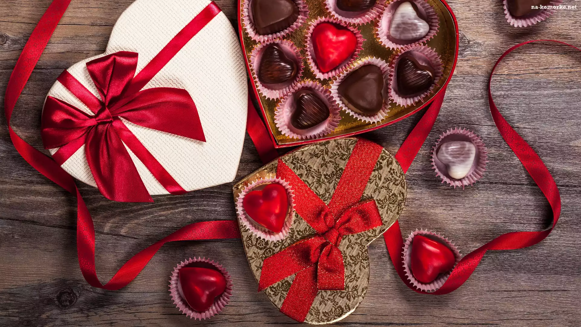 Serduszka, Pralinki, Czekoladki, Czerwone, Bombonierki, Kokardy na Komórkę