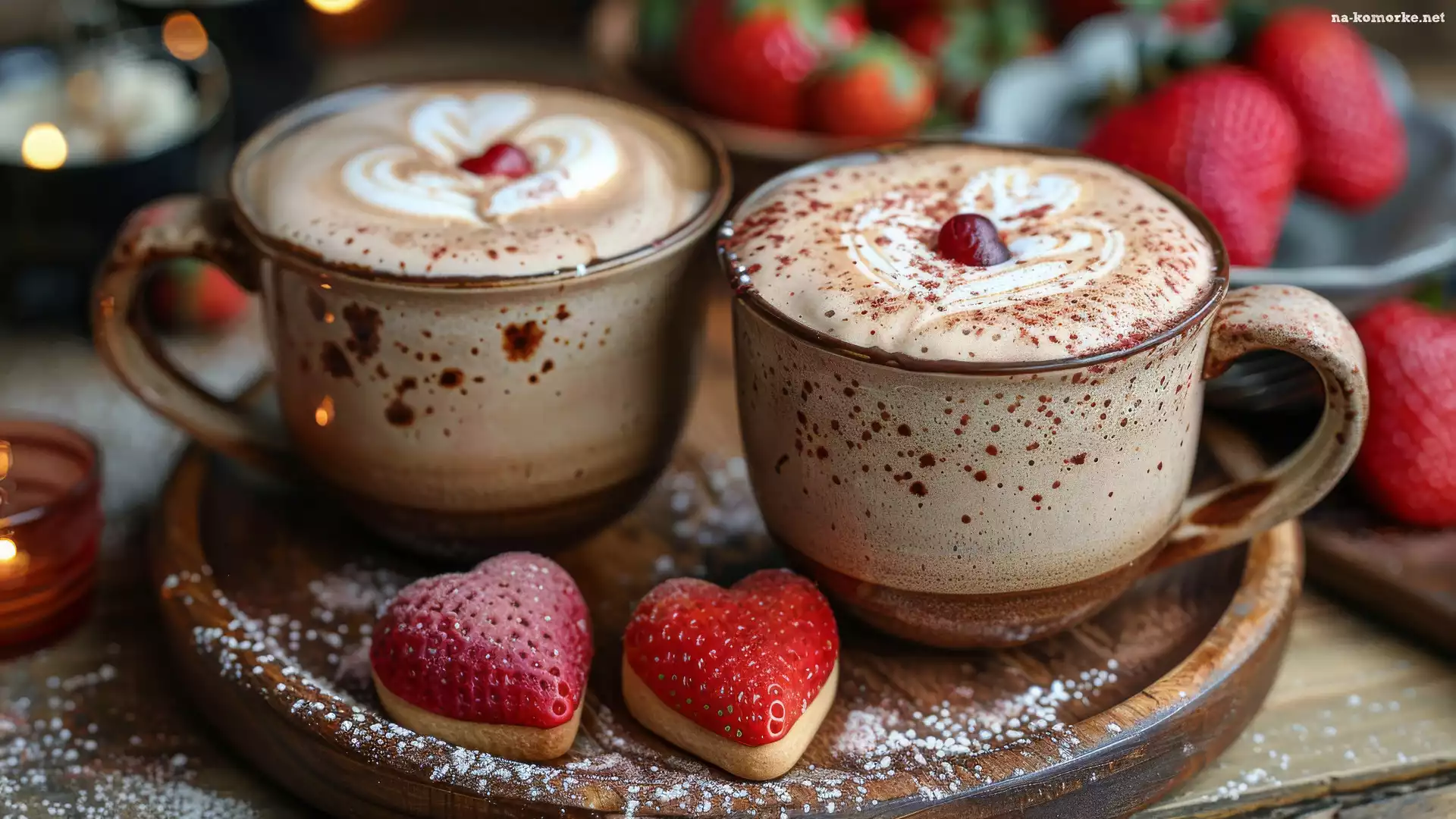Taca, Dwie, Cappuccino, Serduszka, Kawa, Filiżanki na Komórkę