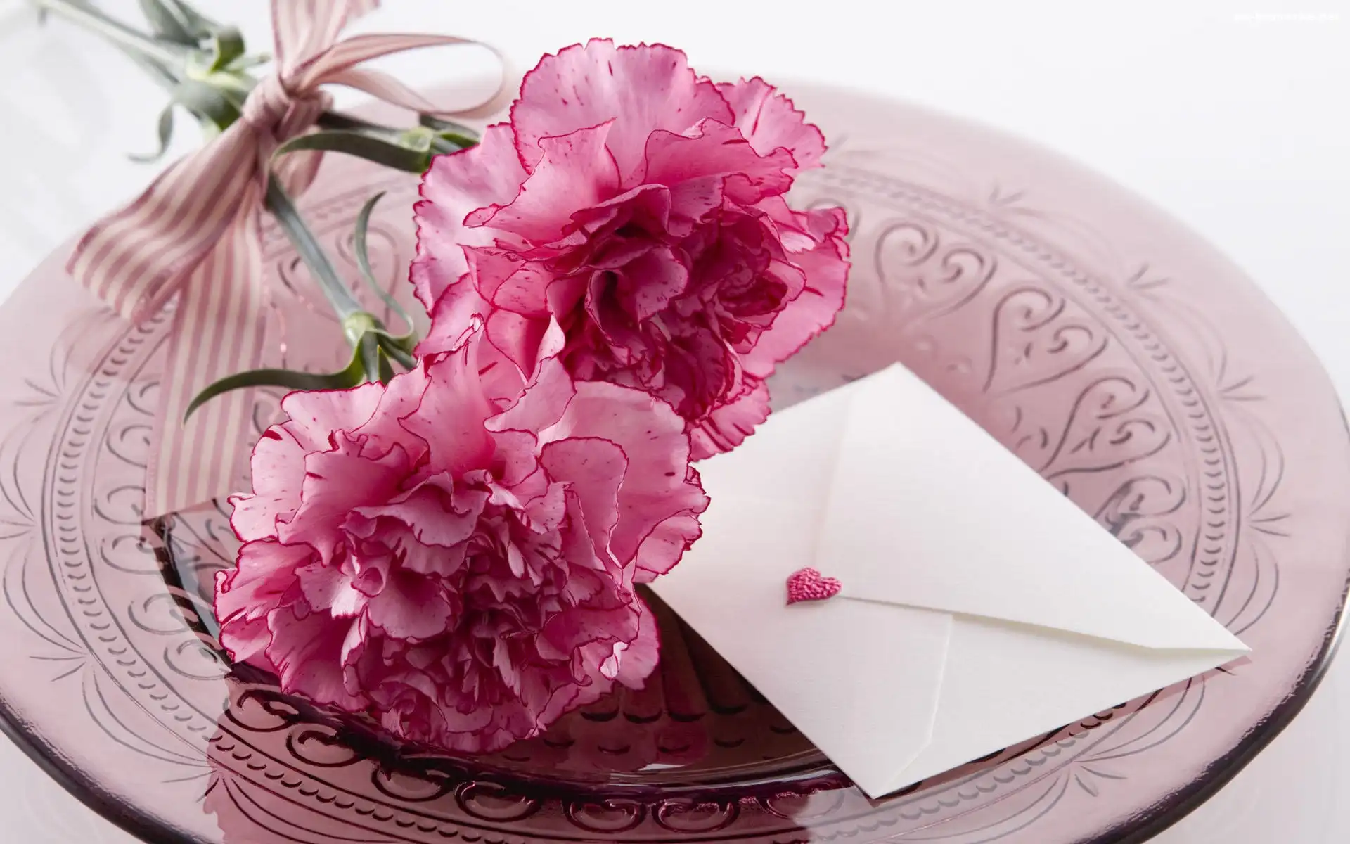 Serduszko, Goździki, Wstążka, Talerzyk, Koperta na Komórkę