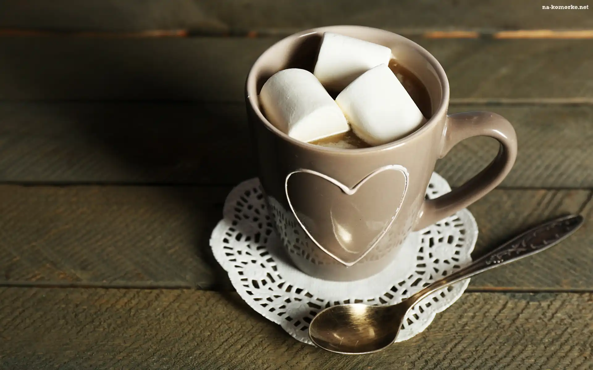 Kawa, Serwetka, Deski, Kubek, Serce, Łyżeczka, Pianki na Komórkę