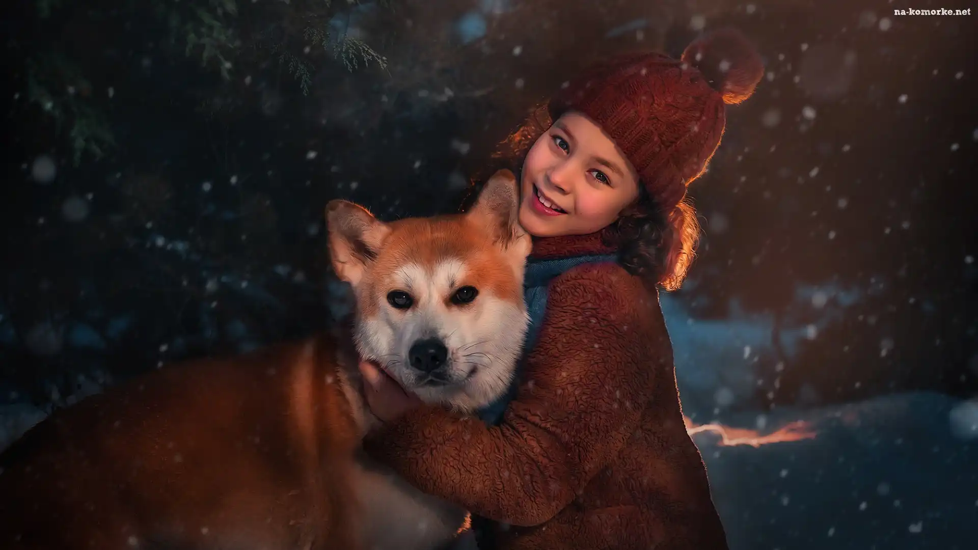 Shiba inu, Dziewczynka, Uśmiech, Czapka, Pies na Komórkę