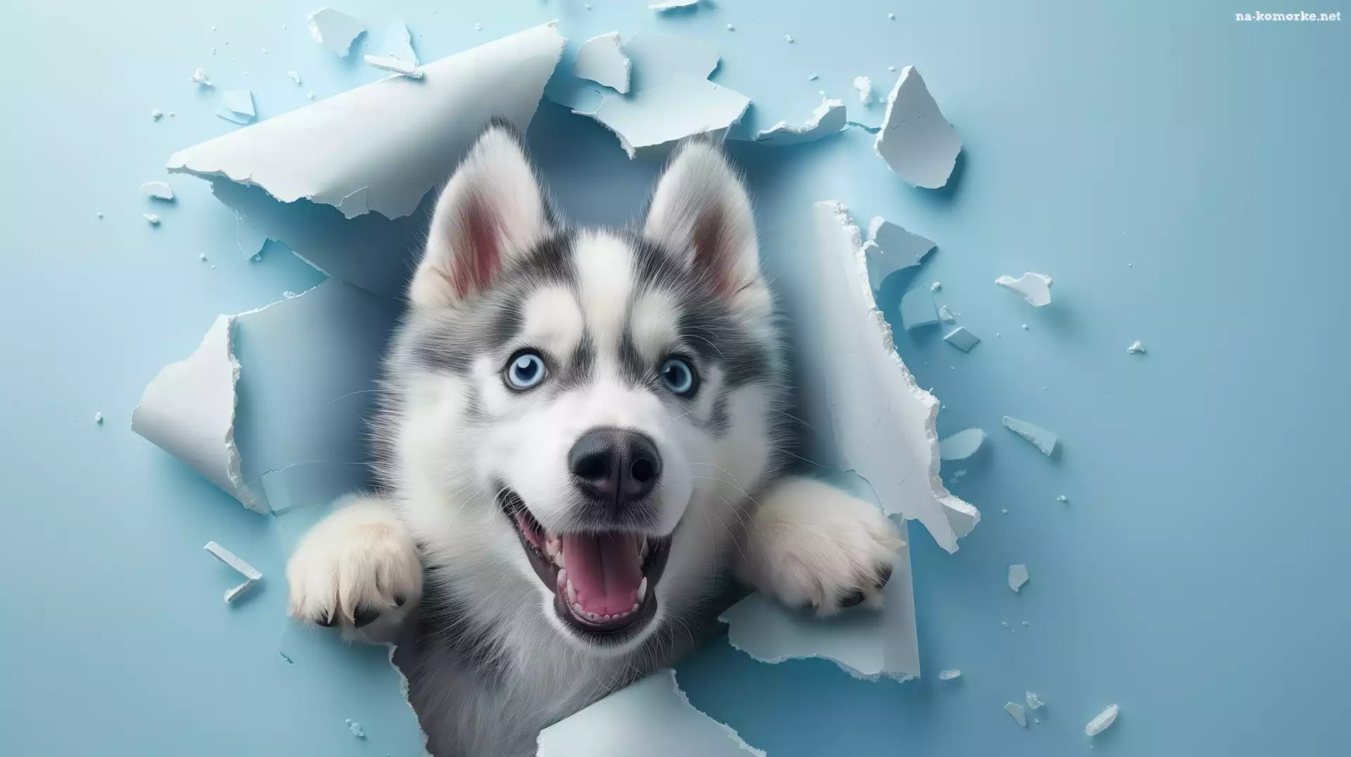 Pies, Dziura, Ściana, Siberian husky, Niebieska na Komórkę