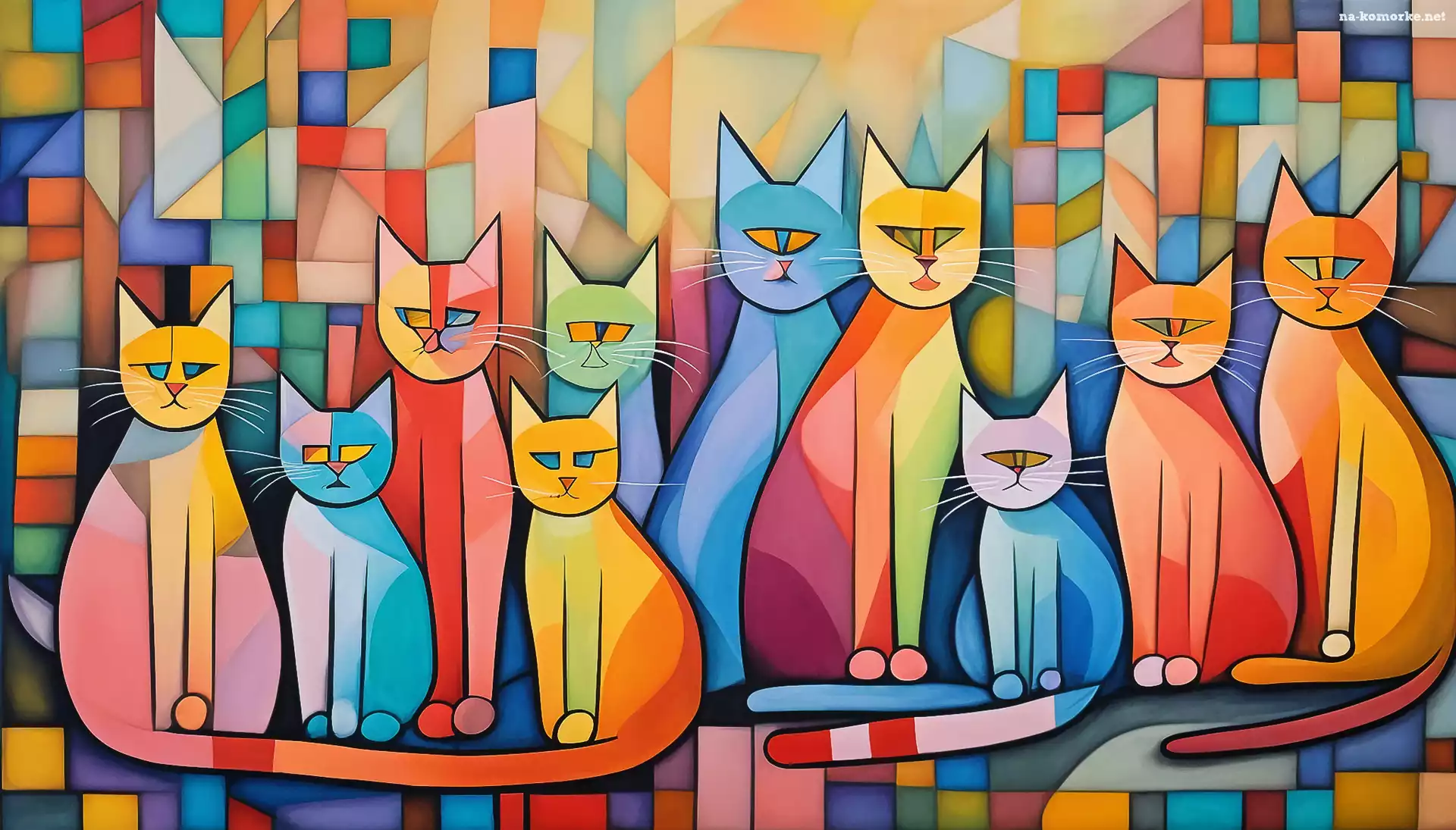 Koty, Grafika, Kolorowe, Siedzące na Komórkę